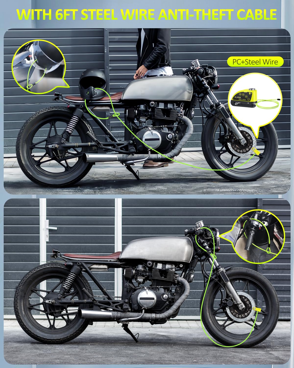 This Motorcycle Lock Not Only Be Used As A Daily Locking Security Tool, But Also Has A Sensitive And Super Loud Alarm Function.If The Thief Tried To Keep Stealing Your Bike Or Motorcycle He Would Have To Put Up With A Blaring Siren. Plus All The Attention The Noise Would Draw.Its A Very Suitable Safety Lock For All Less Than 7Mm Brake Rotor Motorcycle Wheel, Bicycles, Electric Bikes And Motorbikes With Disc Brakes, Boosting Bicycles, Etc.