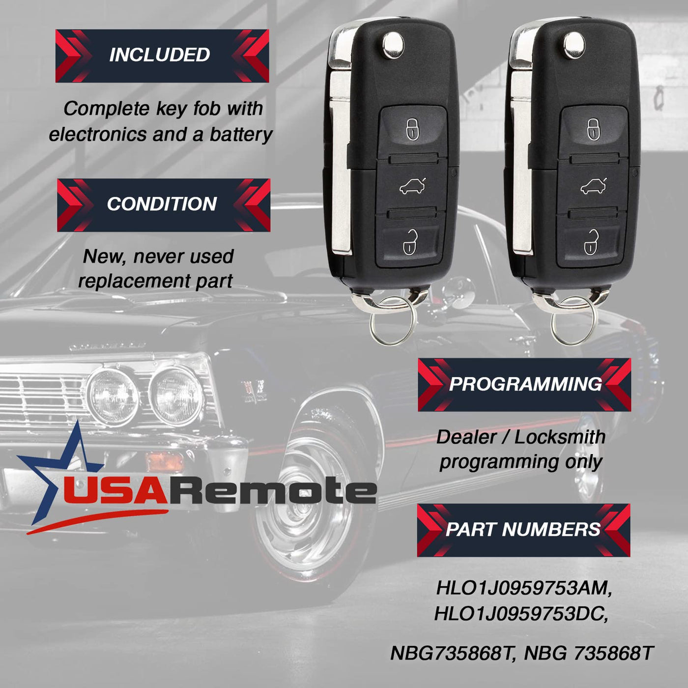 Replacement Keyless Entry Remote Flip Key Fob Fits 2002 2003 2004 2005 Vw Jetta, Golf, Passat (Hlo1J0959753Am, Set Of 2)