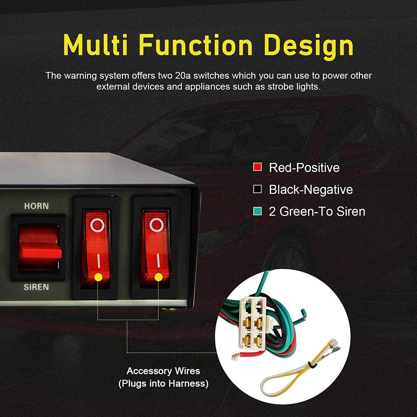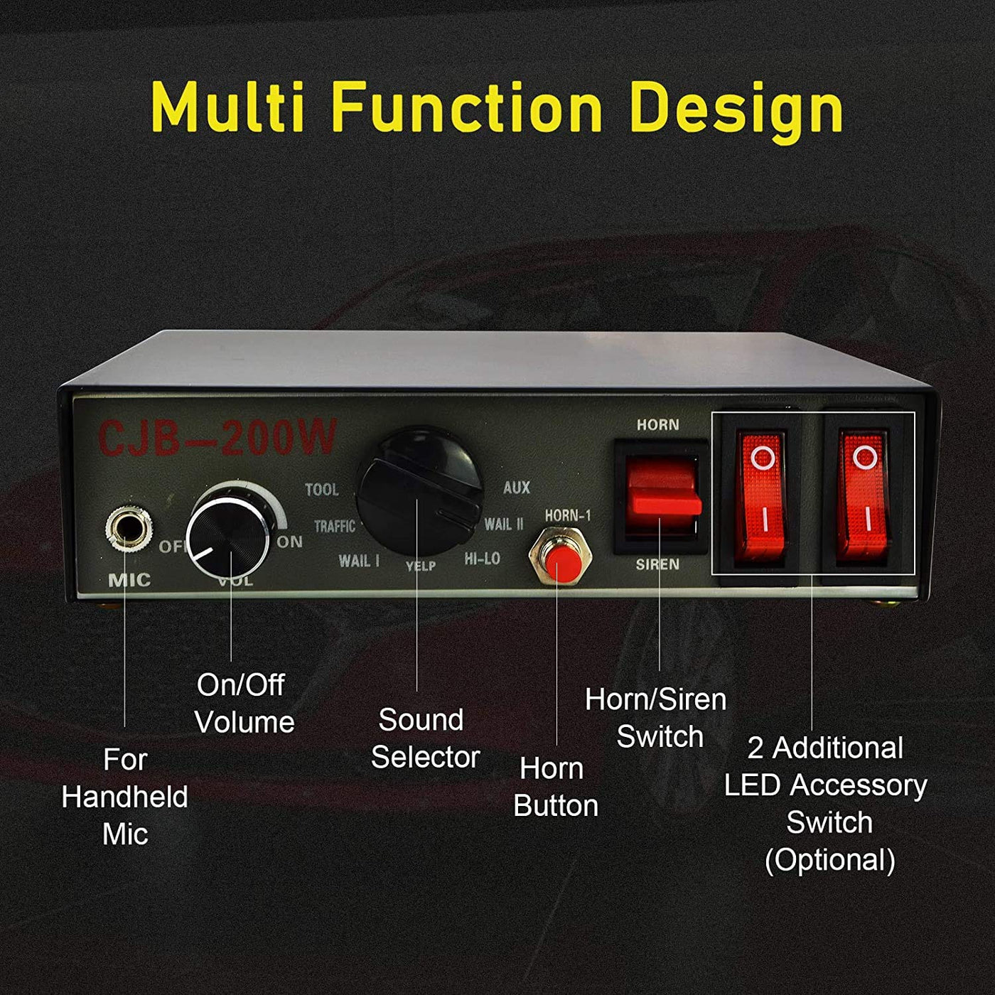 Description: With An Adequate Power Output Of 200W And Powerful Speakers, With A Higher Rating Of Over 300Db You Get Quality Audio Output Which Is Audible From A Distance Away. It Contains 9 Warning Tones To Fit For Police, Ambulance, Fire, Engineer, Private Vehicles, Etc. Features: 200 Watt Amplifier And 8 Tones Hands-Free Operation With Override From The Horn Ring The Warning System Offers Two Switches Which You Can Use To Power Other External Devices And Appliances, Such As Strobe Lights. Suitable For Police, Fire, Ambulance, Traffic, Engineer, And Private Vehicle To Use As A Pa System Or Audio Warning Device Pre-Wired Unidirection Microphone With Ptt (Push To Talk) Button To Override The Siren During Time Of Usage Specification: Input Voltage:12Vdc Input Current: =15A Output Power:200W Impedance: 8O Speaker: 4O Light Line Current:=15A Sound Pressure:=300Db Frequency Range:300~5000Hz Siren Amplifier Wires: White For Positive(+), Black For Negative(-) Package Includes: 1 X 200W Siren Amplifier 1 X 200W Plastic Square Mouth Speaker 1 X Handheld Controller 1 X Connect Line Groupware Set 1 X Bracket Mounting & Accessoriesv 1 X Owner'S Manual