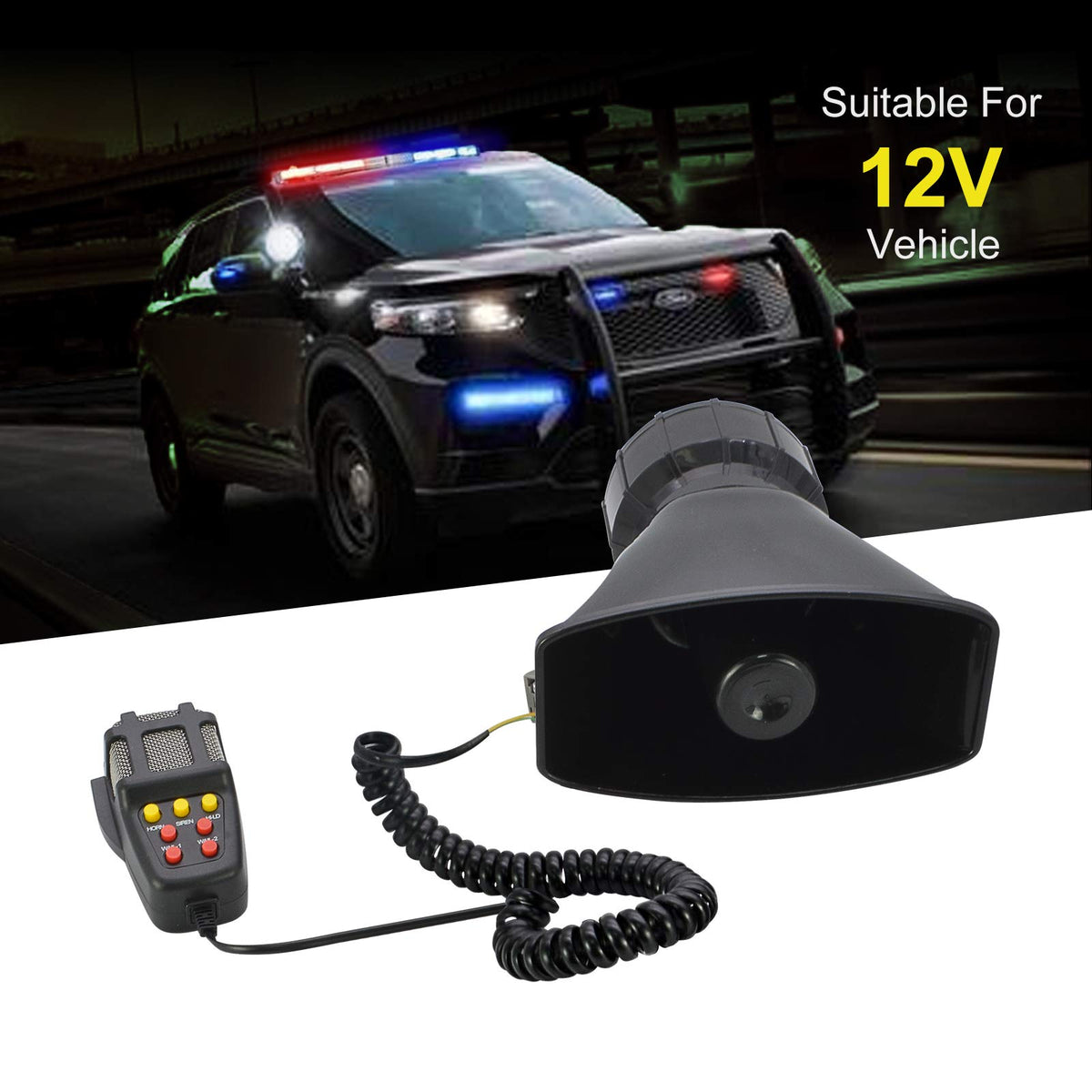 Safego Police Siren Speaker Car Pa System, Dc12V 100W 7 Tones Wired Handheld Microphone Loudspeaker Emergency Siren Electronic