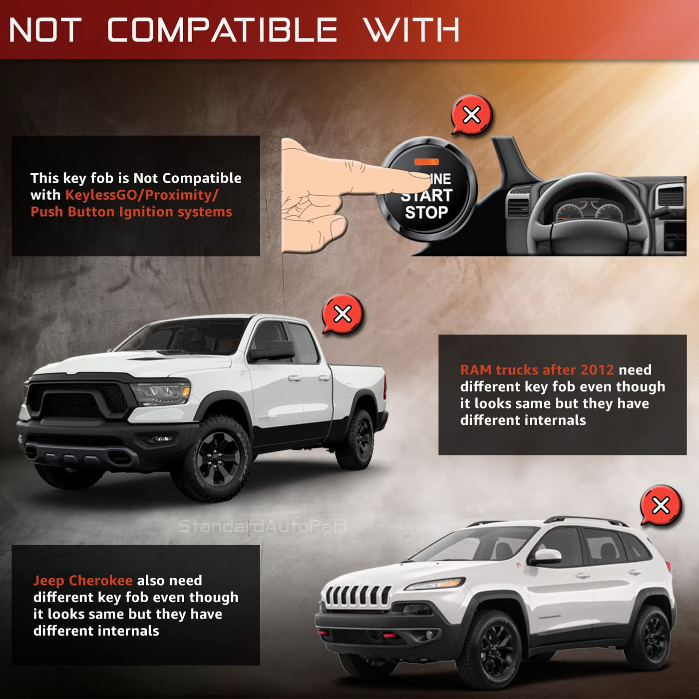 Standardautopart Premium Replacement Car Key For Grand Caravan Journey Durango Ram Town And Country M3N5Wy783X Iyz-C01C (Complet