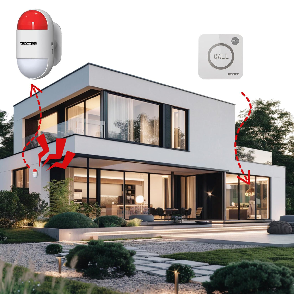 Taoctee Panic Button Alarm For House Remote Control Strobe Siren Alarm System Sound & Light Emergency Panic Button For Security,