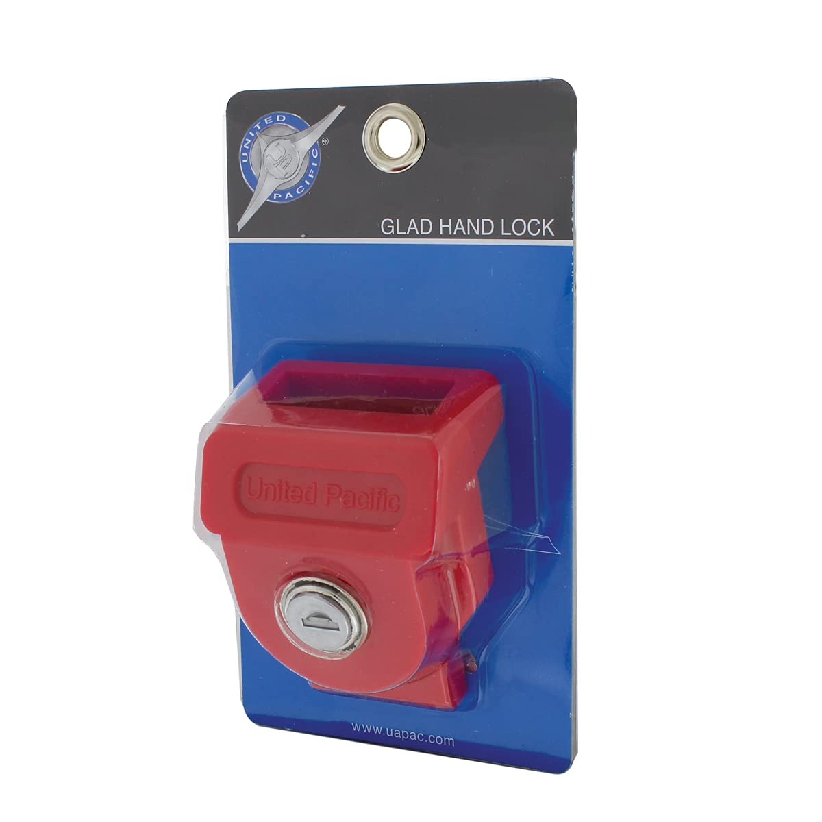 United Pacific 90625 Heavy Duty Plastic Glad Hand Lock, Individually Keyed, Over Molded Lock Cylinder, Trailer Lockout Device