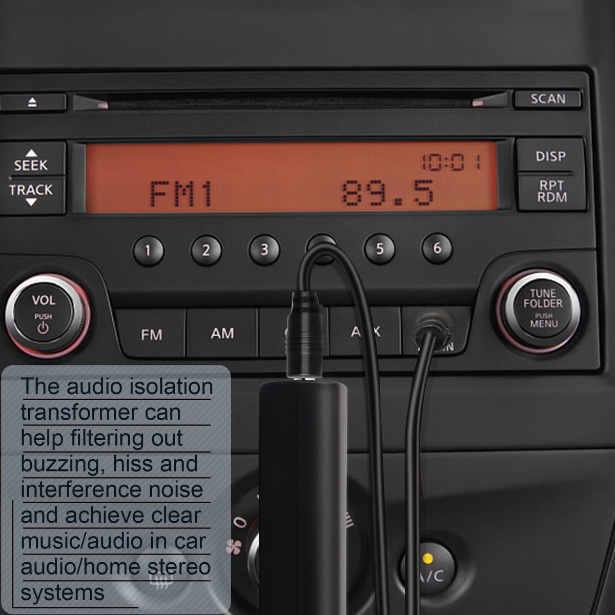 The Ground Loop Noise Isolator Can Help You Completely And Easily Solve The Noise Problem. The Audio Isolation Transformer Can Help Filtering Out Buzzing, Hiss And Interference Noise Caused By Ground Loops Happening When The Audio Source And The Speaker Use The Same Power Source In Some Car Audio/Home Stereo Systems When Using The Bluetooth Receiver. Features - Eliminating The Buzzing Noise - No Battery Needed - Portable And Lightweight - Easy To Use - Durable Package Content Ground Loop Noise Isolator X 2