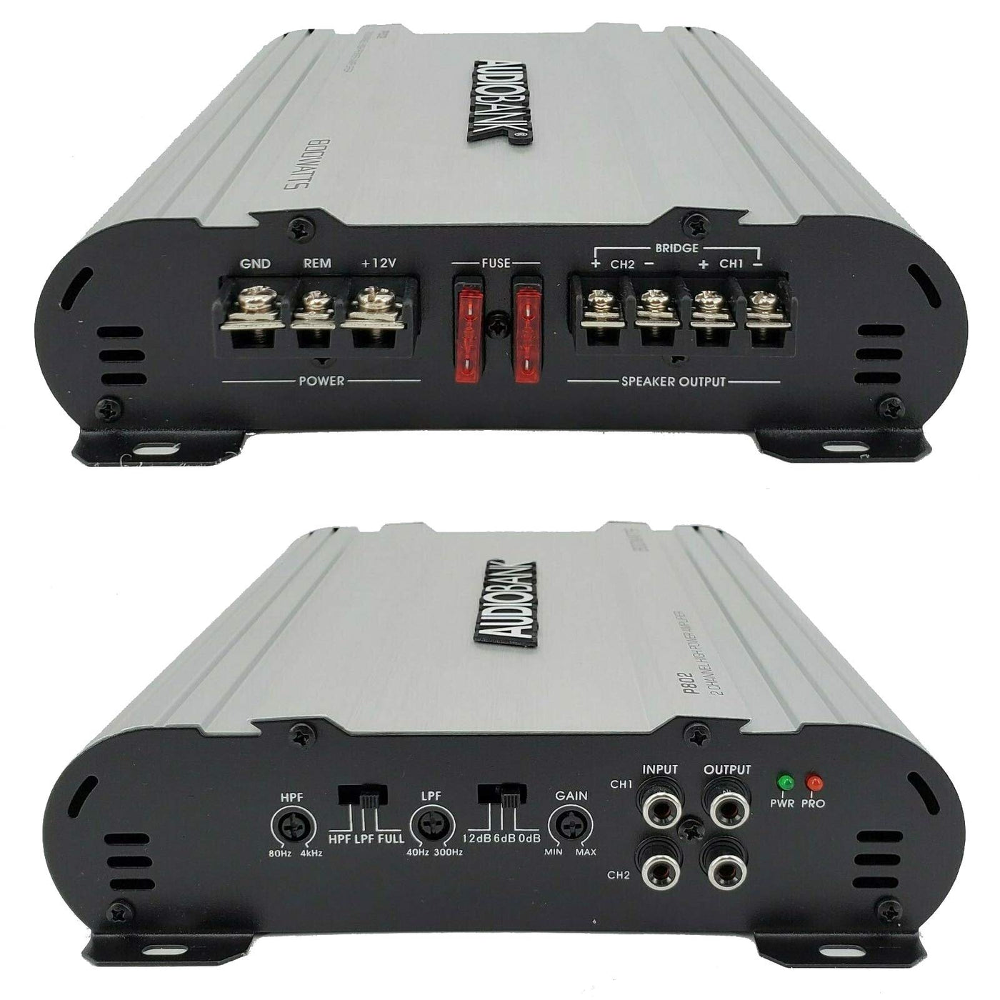 Audiobank 2 Channels 800 Watts Bridgedable Car Audio Stereo Amplifier P802 Heavy Duty Aluminum Alloy Heatsink | Class A B Operat