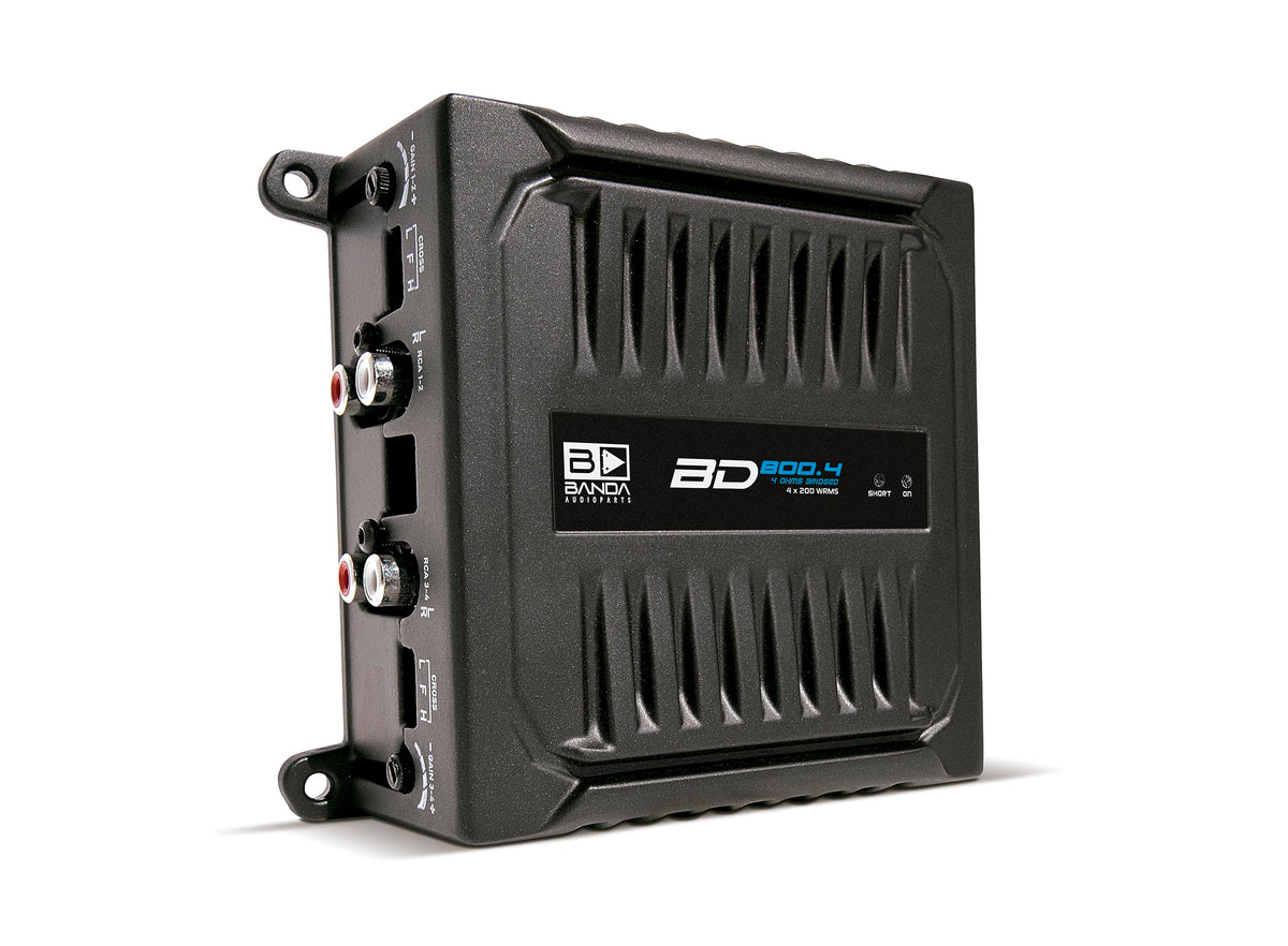 'Banda Audioparts Bd800.42Ohm 800 Watts 4 Channel 2 Ohm Full Range Car Audio Amplfier 4 X 200 Watt Rms 4 Ohms Bridged - Black || Specifications Model # Bd800.42Ohm Color : Black 800.4 : 4 X 100 Wrms | Total Power 14,4 @ 2 Ohms : 4 X 260 Wrms | Total Power 14,4 @ 4 Ohms : 2 X 520 Wrms | Total Power 12,6 @ 2 Ohms : 4 X 200 Wrms | Total Power 12,6 @ 4 Ohms : 2 X 400 Wrms | Efficiency @ 4 Ohms : 0.84 | Efficiency @ 2 Ohms : 0.78 | || Specifications Input Voltage : 9 - 15V | Input Impedance : 22K Ohms | Thd+Noise :