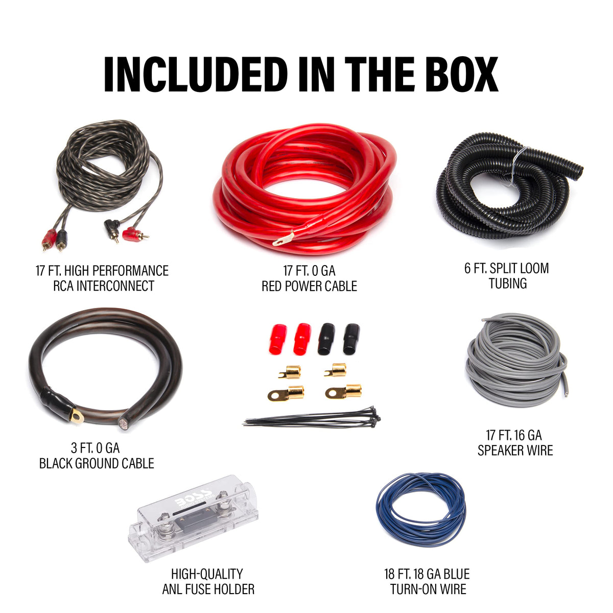 Boss Audio Systems Kit20 0 Gauge Amplifier Installation Wiring Kit - A Car Amplifier Wiring Kit Helps You Make Connections And Brings Power To Your Radio, Subwoofers And Speakers