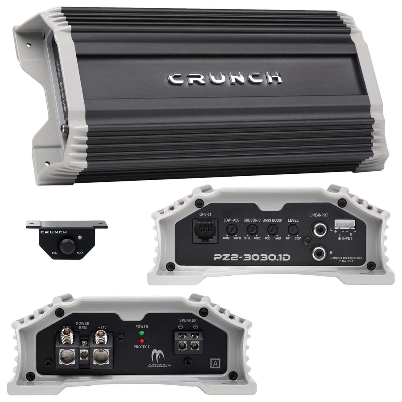 Crunch Powerzone 2 Monoblock Amplifier, 3000 Wattsclass D Amplifier3000 Watts Max Power1 X 3000 Watts @ 1 Ohm1 X 1500 Watts @ 2 Ohms1 X 750 Watts @ 4 Ohmsdim: (W X H X L) 7 3.25 17External Fuse: 125A (Not Included)Powerzone 2 Monoblock Subwoofer Car Amplifier Highlighted With Aggressive Heatsink Elements Feature Speed-Fet Output Devices And Qtd Technology Produces 3000 Watts Of Power In A 1 Ohm Stable Application. Bass Remote Is Included.1 Ohm Stablevariable Low Pass Crossover: 40Hz 300Hz (12Db Per Octave)Bass Boost: 0-12Dbsubsonic Filter: 10Hz 40Hzfrequency Response: 10Hz 500Hztotal Harmonic Distortion (Thd): < 0.1%Speaker Level Inputsrca Preamp Inputspower Terminal 12V/Gnd: 4 Awgspeaker Terminal Wire Gauge: 12 Awgled System Protection Circuitry Diagnosticsbass Remote Includedweight: 6.75 Lbsqtd (Quick Thermal Dispersion) Technology Assures The Amplifier Makes Huge Power While Running Very Cool With Nearly Undetectable Musical Distortions.Rugged Mosfet Pulse Width Modulation Power Supply. Allows Amplifier To Product Efficient Power Without Taxing The Vehicle Electrical System.Exclusive Crunch Speed-Fet Mosfet Components Maximize Power Efficiency While Improving Sound Quality And Minimizing Distortion.