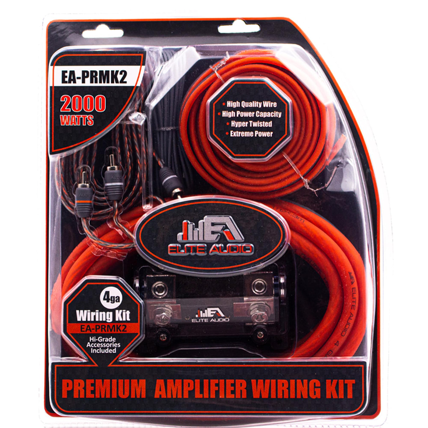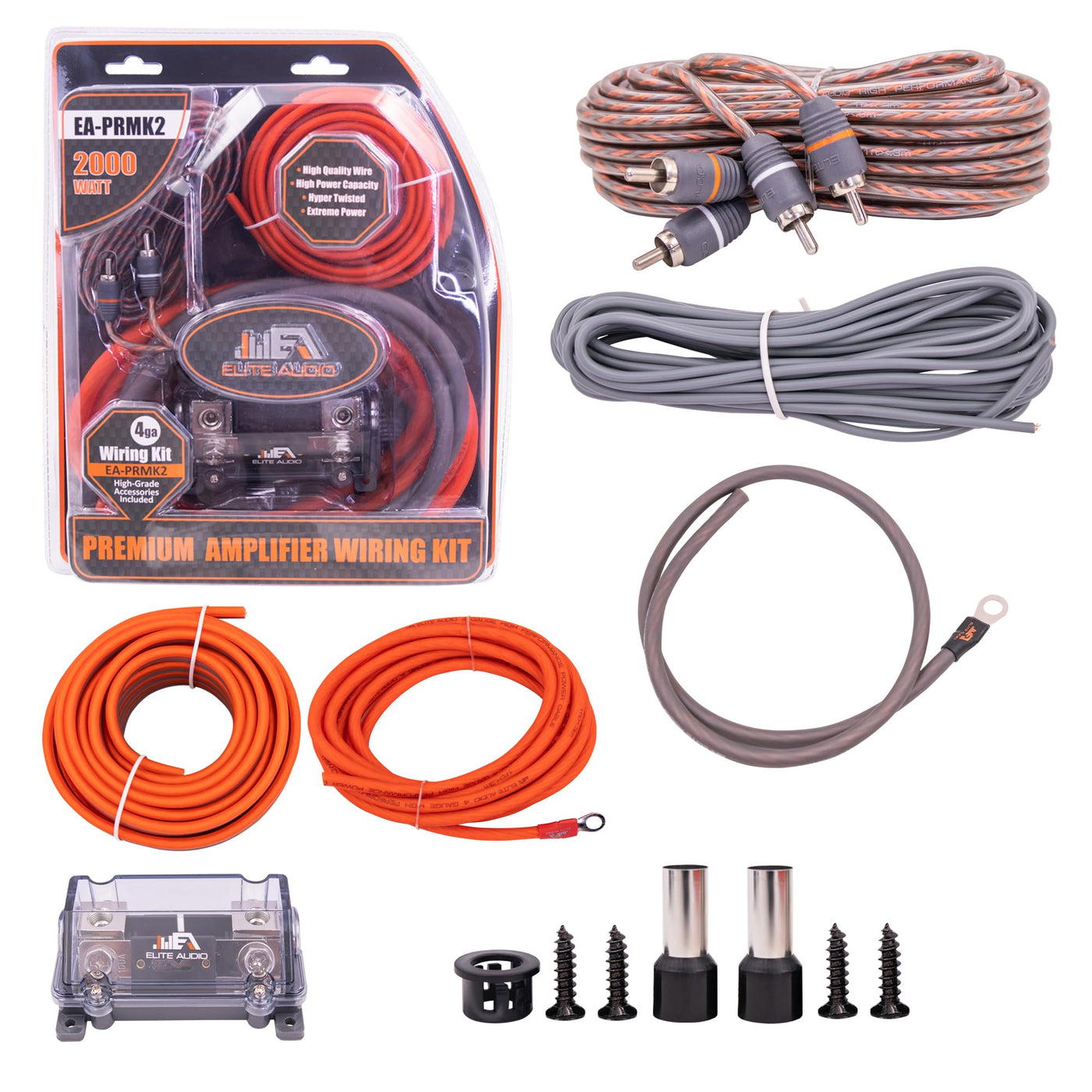 Elite Audio Premium Series 4 Gauge Amp Kit 2000W Max Power, Copper Clad Aluminum Wire, Triple Shielded Rca Cables, High Power Capacity, Mini Anl Fuse Holder, Car Amplifier Install Kit Ea Prmk2