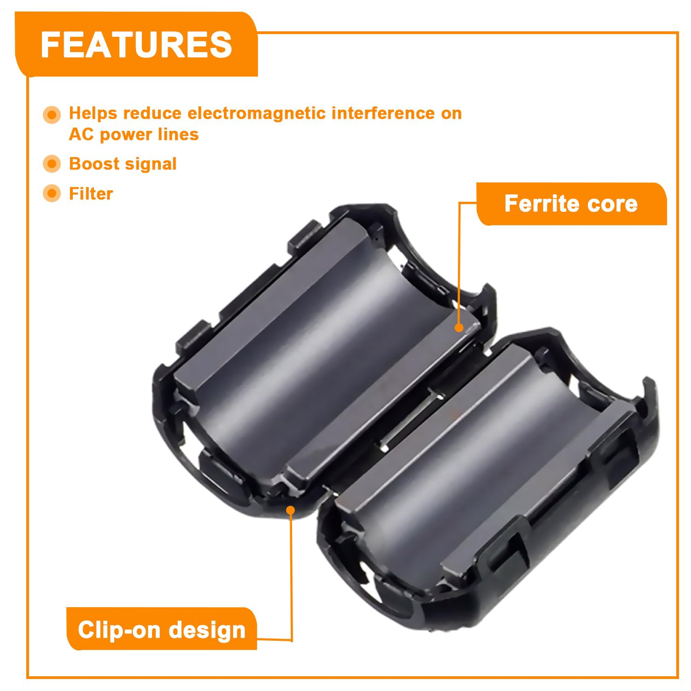 Huarew 60 Pcs Black Clip-On Ferrite Ring Core Rfi Emi Noise Suppressor Cable Clip For 3Mm 5Mm 7Mm 9Mm 13Mm Diameter Cable A Variety Of Sizes And Quantities Are Available To Meet Your Needs. 3 Mm: 28Pcs 5 Mm: 11Pcs 7 Mm: 11Pcs 9 Mm: 5Pcs 13 Mm: 5Pcs 60 Pcs In Total This Rectangular Ferrite Bead Can Be Widely Used In Various Power Lines, Data Lines, Usb Lines, Telephone Lines, Audio Lines, Etc. To Shield External Electromagnetic Interference. Install A Ferrite Core On The Device Side Of The Cable. It Can Be Clipped To The Cable Whether Or Not It Has A Connector Or Is Hardwired To The Device. If There Are Devices To Be Protected On Both Sides Of The Cable, Install One On Each End.