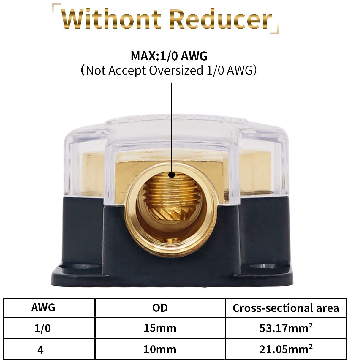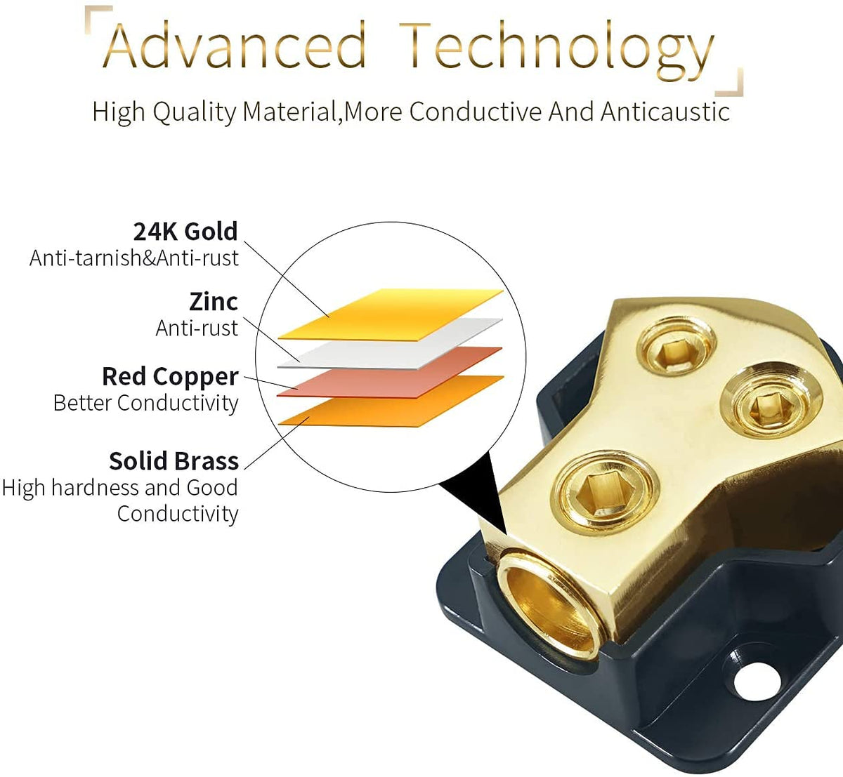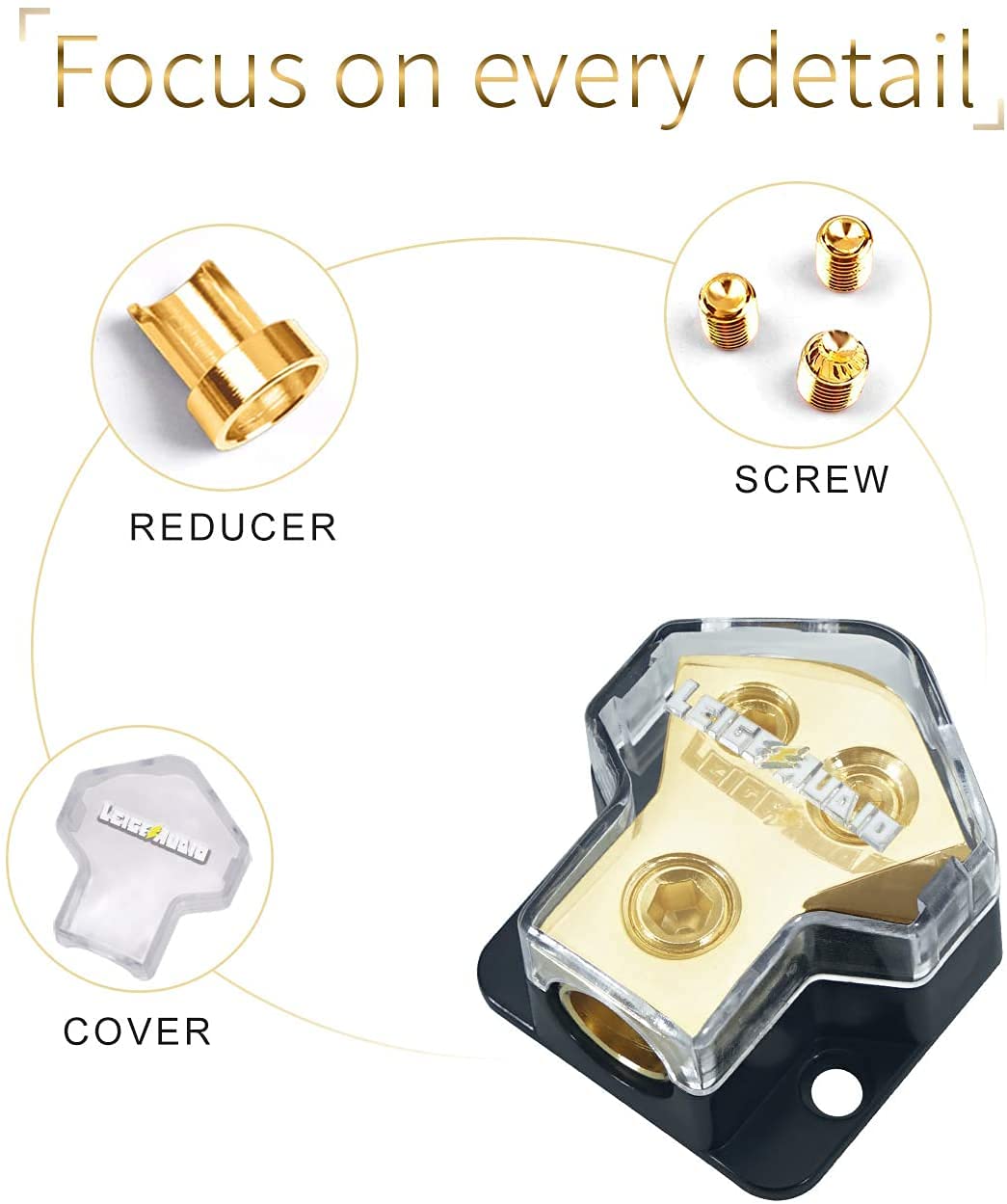 Leigesaudio 2Pack 0/2/4 Gauge In 4/8 Gauge Out 2 Way Amp Copper Power Distribution Block For Car Audio Splitter
