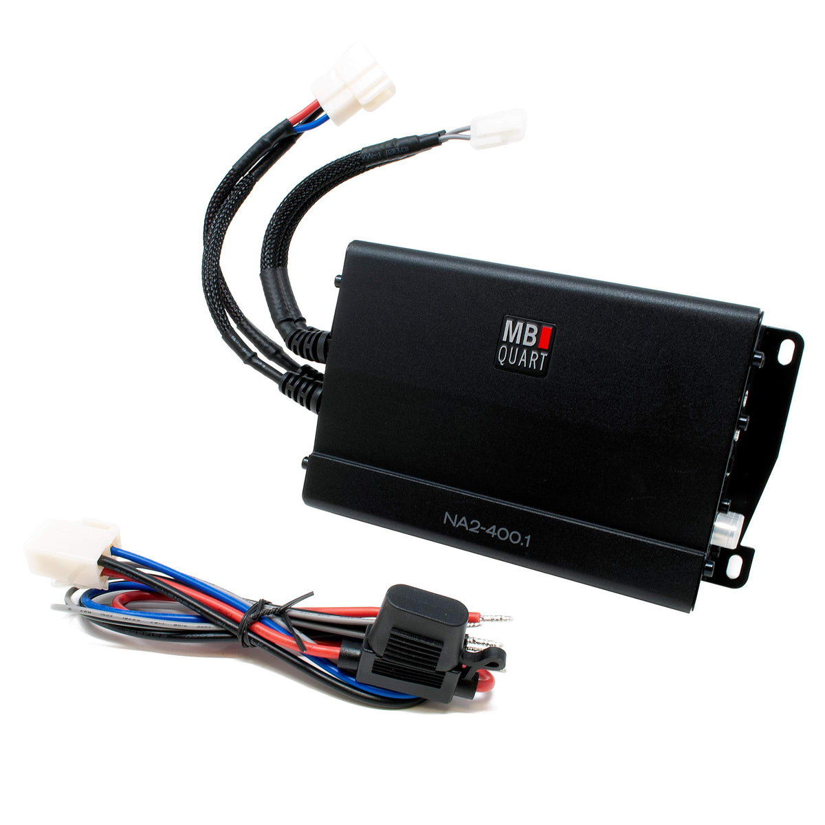 'Mb Quart Compact 400 Watt Mono Powersports Amplifier To For A Subwoofer With On-Board Equalization And Simple Instalation With Quick Release Connectors. Bass Remote Included Specifications Class Full Range Class D Variable Voltage 0.2V~9V Signal To Noise Ratio>100Db Frequency Response 10Hz-300Hz Crossover Type Electronic 12Db Per Octave Crossover Frequency Range Ch1 & Ch2 Switch Low Pass 300 Hz Bass Boost 0-12Db@45Hz Subsonic Filter 60Hz Power @ 2-Ohms 1 X 500W Power @ 4-Ohms 1 X 250W Total Channels Mono Audio Inputs Rca Power Terminal 12V/Gnd Molex 10 Ga Speaker Terminal Wire Gauge Molex Plug Connector Fusing 1 X 30 Amps Certifications Marine & Powersports Dimensions 3.70 X 5.51 X 1.77 In 9.4 X 14.0 X 4.5 Cm Weight 2.09 Lbs (0.95 Kg)'