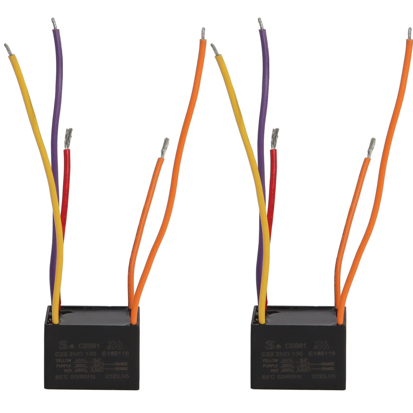 Podoy Cbb61 4.5Uf/5Uf/6Uf 5 Wire Capacitor | Capacitor Capacity (?f): 4.5 + 5 + 6?f | Capacitor Voltage (Vac): 250Vac, 50/60Hz, Tolerance : +/-5% | Package Includes 2Pc Cbb61 Ceiling Fan Capacitor | Non Original Aftermarket Part.The Part/Product Is Not Sponsored Or Endorsed By,Or Affiliated With The Brands It Fit,Including New Tech