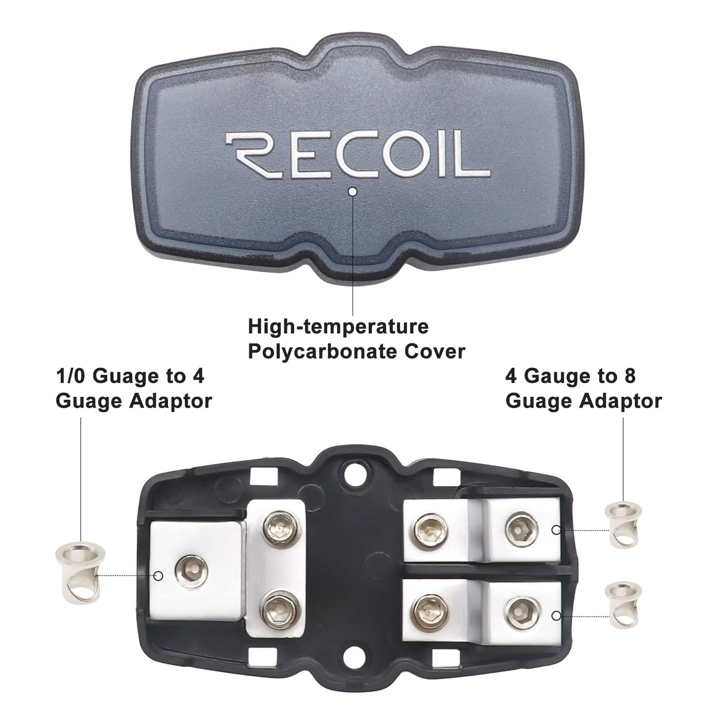Recoil Mfh12 2 Way Mini Anl Fused Distribution Block, 1 X 0/2/4 Gauge In / 2 X 4/8 Gauge Out Fused Distribution Block With 60A,