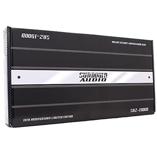 Saz-1500D Limited Edition - Sundown Audio Monoblock 1500W Rms Amplifier Features & Specifications: Double Sided Through Hole Epoxy Pcb 1 Ohm Stable Circuit Daisy-Chain Through Output Rca Two Amp Linkable Function: Output Master And Input Slave Efficiency: 86% @ 4Ohm, At 100Hz 24Db/Oct Variable Crossover Multi-Way Protection Circuitry (Thermal / Over Current / Speaker Short / Speaker Dc Protection) Rca Input And Rca Master Output To Rca Slave Input Input Sensitivity: 200Mv ~ 6V Subsonic Filter: 10Hz ~ 60Hz Variable Bass Boost: 0 ~ 6Db Variable Low Pass Filter: 35Hz ~ 300Hz Variable Phase Shift: 0 ~ 180 Degree 0 Gauge Power & Ground Supply Connectors 8 Gauge Speaker Connectors Signal / Noise Ratio: >90Db Damping Factor: +350 Tested Voltage & Thd: 14.4V & Less Than 1% Thd Operating Voltage: Dc 10V ~ 18V Power Input Wired Remote Controller Dimensions: 18.5' L X 10' W X 2.25' H