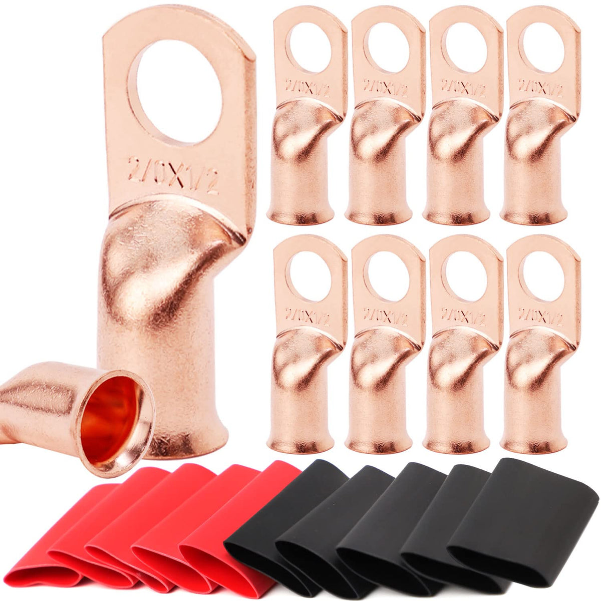 Tkdmr 10Pcs 20 Awg-12 Battery Lugs,Copper Wire Lugs,Heavy Duty Battery Cable Ends,Tubular Ring Terminals,Awg Crimp Wire Ring Lugs,Battery Terminal Connectors With 3:1 Heat Shrink Tubing Specification: Item Name: Battery Cable Lugs Material: Bare Copper Package Includes: 10Pcs * Battery Terminal Lugs 10Pcs * Heat Shrink Tubing(5Pcs Black,5Pcs Red) These Pure Copper Perforated Tubular Ring Ears Have Good Conductivity And Stability Comes With 3: 1 Heat-Shrinkable Tube Accessories, Convenient To Usesave Money The Wire Gauge Identification Mark Is On The Lug, Suitable For Standard Size Awg Cable ,Various Types Of Wire Gauges To Choose Ring Terminal Lugs Are Designed With Closed End Pads, Which Protect The Electrical Components, Batteries And Cables From Moisture, And Also Prevent Solder Leakage During Installation Awg Lugs Can Be Crimped Or Soldered From The End Of Your Awg Wire By Installation Tools Best Customer Service: If You Have Any Problems Concerning The Product, Please Contact Us As Soon As Possible, You Will Get A Reply Within 9 Hours,We Absolutely Provide Fast Response And The Best Customer Support , Buy With Confidence