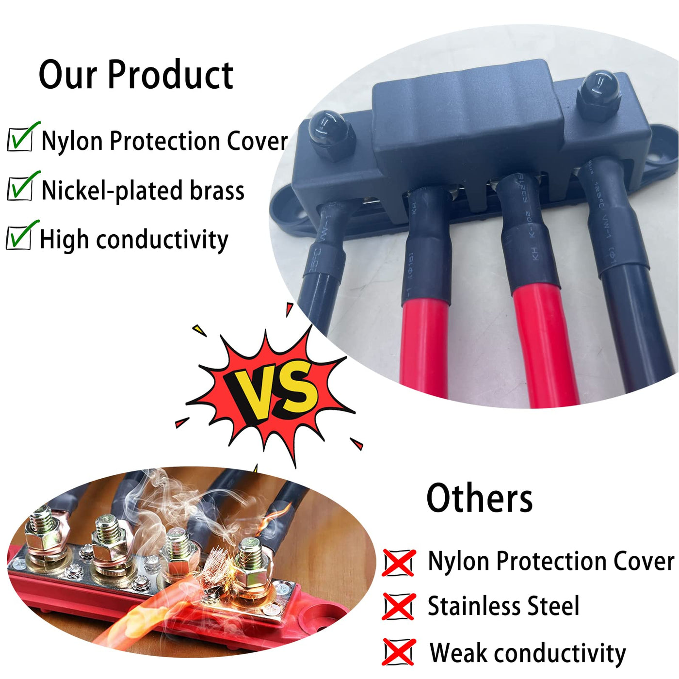 Q: Is this product safe for use with high-power electrical systems?A: Yes, the Young Dance Power Distribution Block is designed for safe electricity use, with protective features like a removable cover to prevent accidental contact and low-resistance connections to reduce the risk of short circuits.