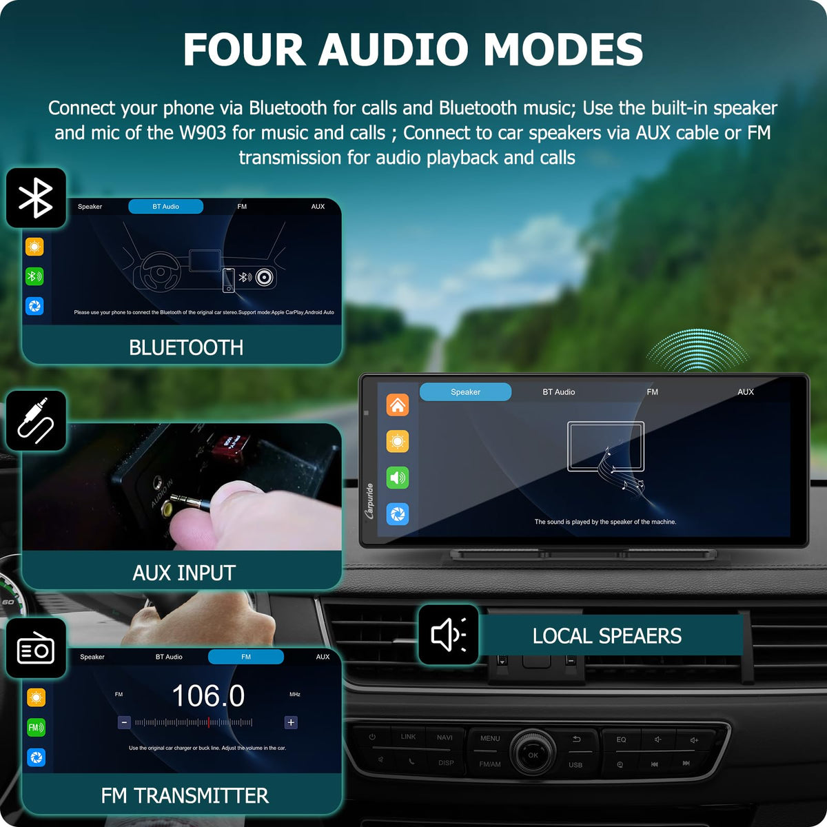 Audio Output: 4 Sound Modes Include Built-In Speaker 8?2W, Bt Audio, Fm, Aux (Note: Supports Car Bt Sound By Carplay Or A-Auto; Does Not Support Tf Sound Transmission To Car Speakers)