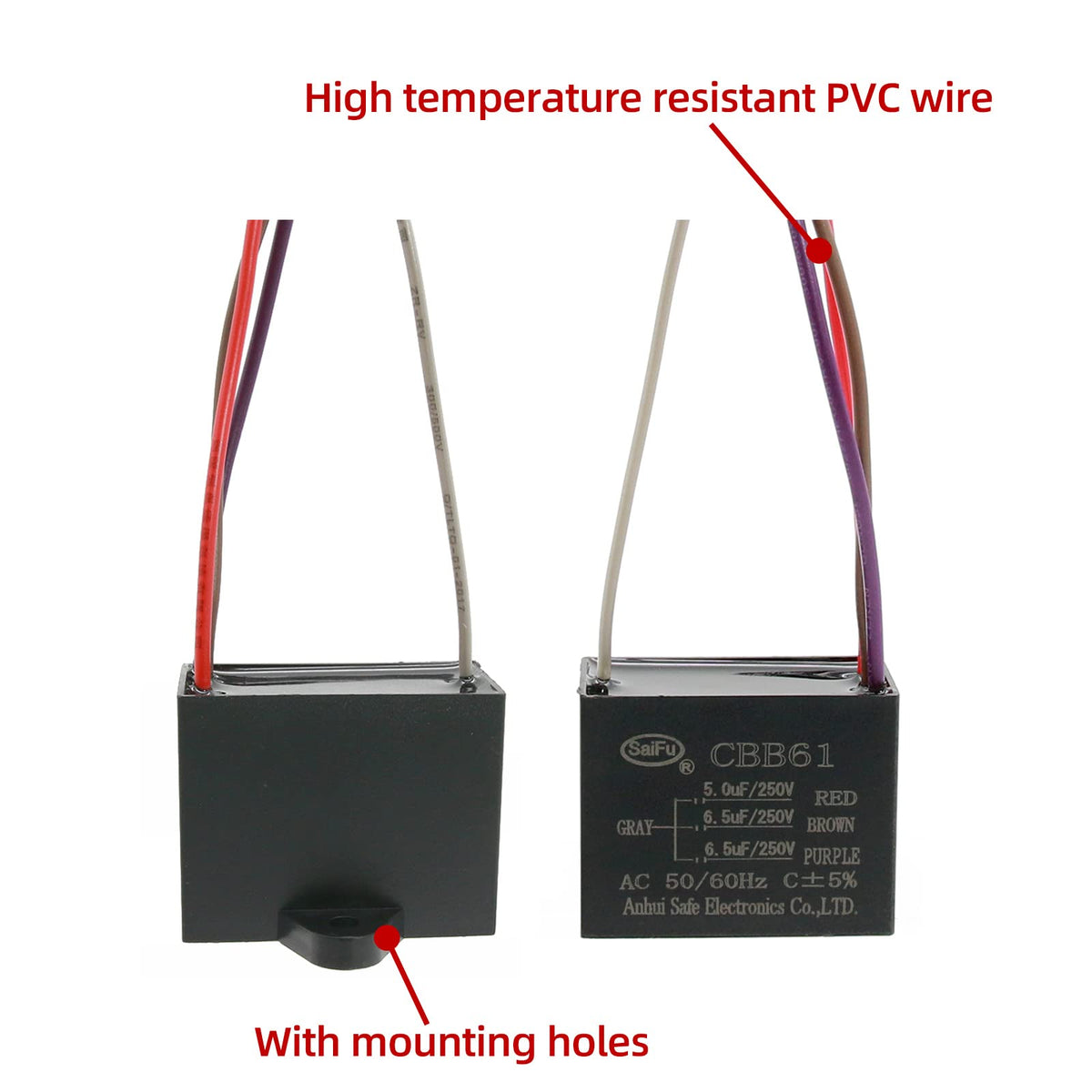 Akzytue Cbb61 Capacitor 5Uf+6.5Uf+6.5Uf 250V Ac Ceiling Fan 4 Wire 50/60Hz For Starting Electric Fan Generator Pump Motor