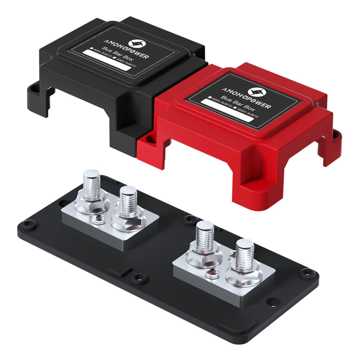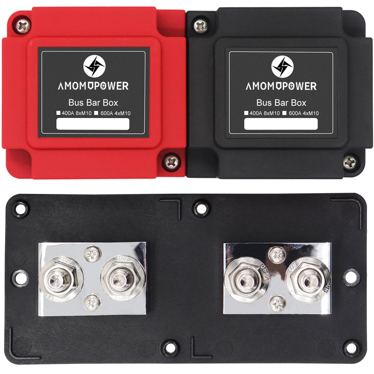 Amomd 600A 48V Bus Bar Box 4 Stud (3/8 Inch) M10 High Current Nickel Plated Copper Distribution Block Positive Negative Independ