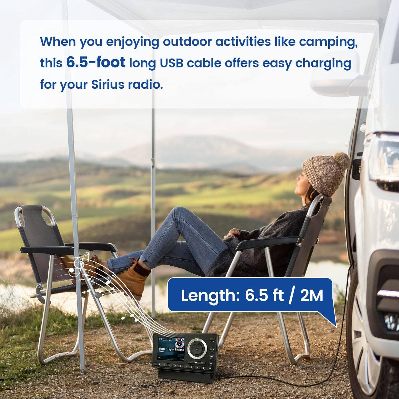 Q: How long is the Anina USB Power Cord Cable?A: The Anina USB Power Cord Cable measures 6.5 feet (2 meters) in length, providing ample reach for connecting your Sirius XM radio receiver to a power source, whether in a vehicle or at home.