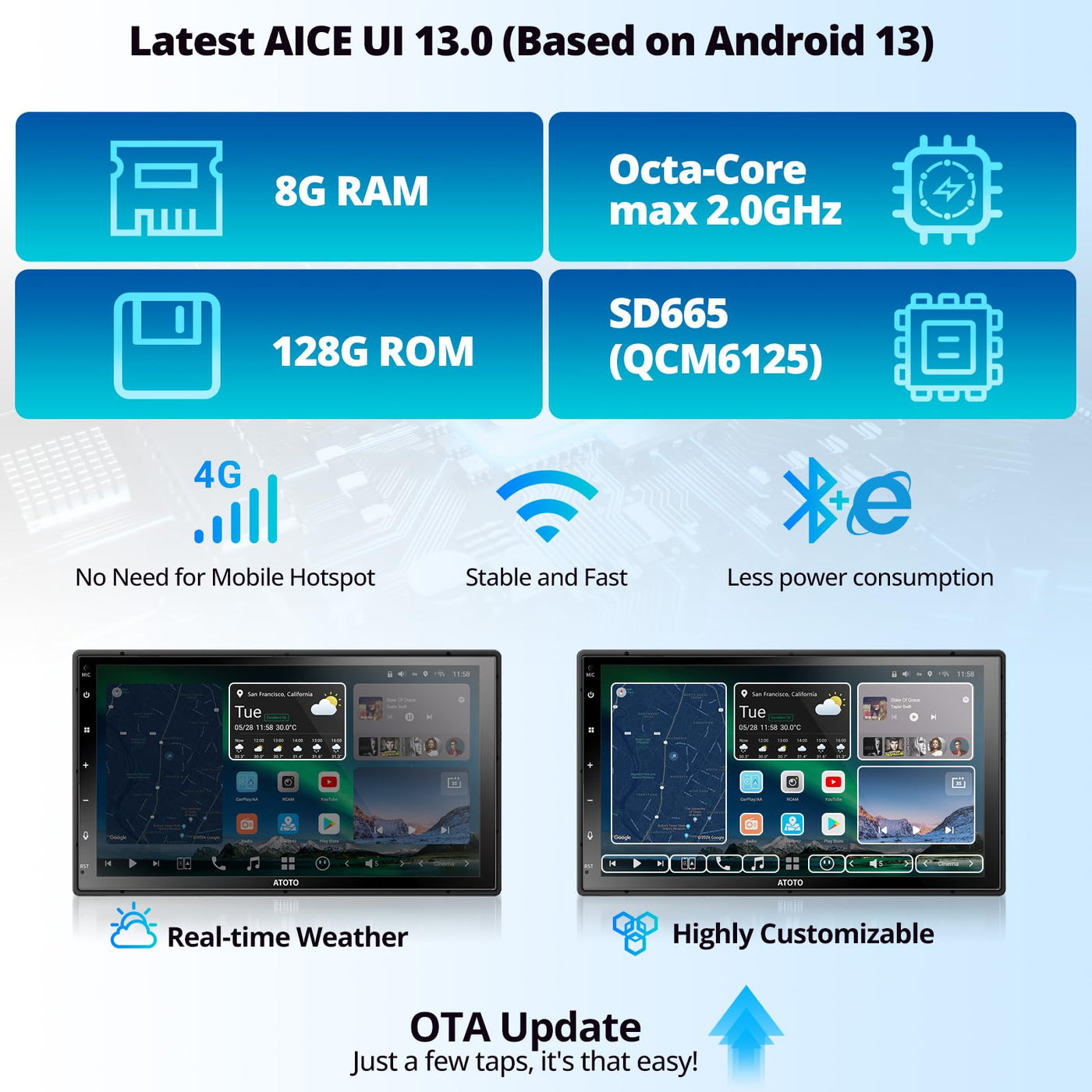 Atotozone X10G2B7E 7Inch Double Din Android Car Stereo, Talk To Chatgpt Ai, 4G Lte, Wireless Carplay & Android Auto, Dual Phone