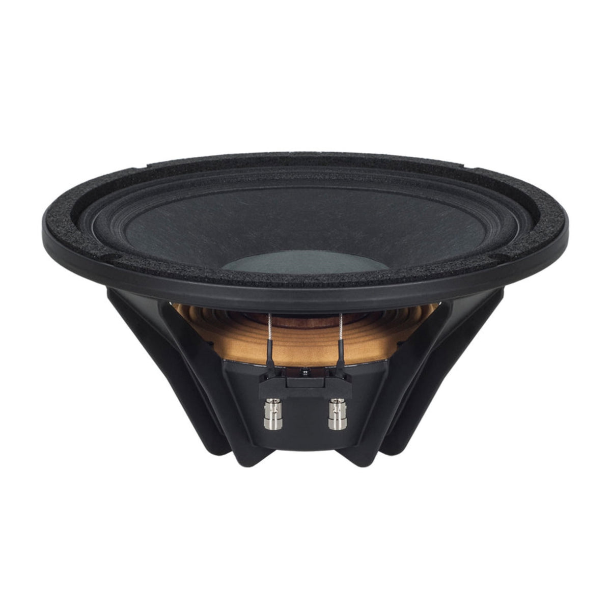 '400 W continuous program power capacity . 64 mm (2.5 in) aluminium voice coil . 60 - 4000 Hz response . 98.5 dB sensitivity . Neodymium magnet allows a very light yet . powerful motor assembly . '' . ''SPECIFICATIONS . Nominal Diameter : 250 mm (10.0 in) . Nominal Impedance : 8 . Minimum Impedance : 6.2 . Nominal Power Handling1 : 200 W . Continuous power handling2 : 400 W . Sensitivity (1W/1m)3 : 98.5 dB . Frequency Range : 60 - 4000 Hz . Voice Coil Diameter : 64 mm (2.5 in) . Winding Material : Aluminium . Former Material : Glass Fibre . Winding Depth : 12.0 mm (0.47 in) . Magnetic Gap Depth : 8.0 mm (0.31 in) . Flux Density : 1.25 T . '' . ''DESIGN . Surround Shape : Double Roll . Cone Shape : Exponential . Magnet Material : Neodymium Inside Slug . Spider : Single . Pole Design : Straight Pole . Woofer Cone Treatment : None . Recommended Enclosure : 26.0 dm3 (0.92 ft 3) . Recommended Tuning : 67 Hz . '' . ''PARAMETERS . Resonance Frequency : 61 Hz . Re : 5.4 . Qes : 0.33 . Qms : 4.5 . Qts : 0.31 . Vas : 32.0 dm3 (1.1 ft3) . Sd : 320.0 cm2 (50.0 in2) . : 2.5 % . Xmax : 4.0 mm . Xvar : 5.5 mm . Mms : 29.0 g . Bl : 15.0 Txm . Le : 0.5 mH . EBP : 184 Hz . '' . ''MOUNTING AND SHIPPING INFO . Overall Diameter : 261 mm (10.3 in) . Bolt Circle Diameter : 245 mm (9.6 in) . Baffle Cutout Diameter : 230.0 mm (9.1 in) . Depth : 122 mm (4.8 in) . Flange and Gasket Thickness : 13 mm (0.5 in) . Air Volume Occupied by Driver : 1.5 dm3 (0.05 ft3) . Net Weight : 2.0 kg (4.4 lb) . Shipping Units : 1 . Shipping Weight : 2.6 kg (5.7 lb) . Shipping Box : 295x314x175 mm (11.61x12.36x6.89 in) . ''
