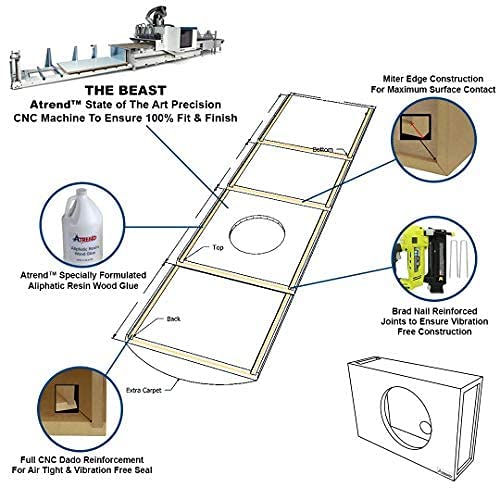 Q: Is the Atrend Bbox suitable for all types of music genres?A: Yes, the Atrend Bbox 12 Inch Vented Subwoofer Enclosure is designed to reproduce a wide range of frequencies, making it suitable for various music genres. Its construction enhances bass response, making it ideal for genres that rely heavily on low frequencies, such as hip-hop and electronic music.