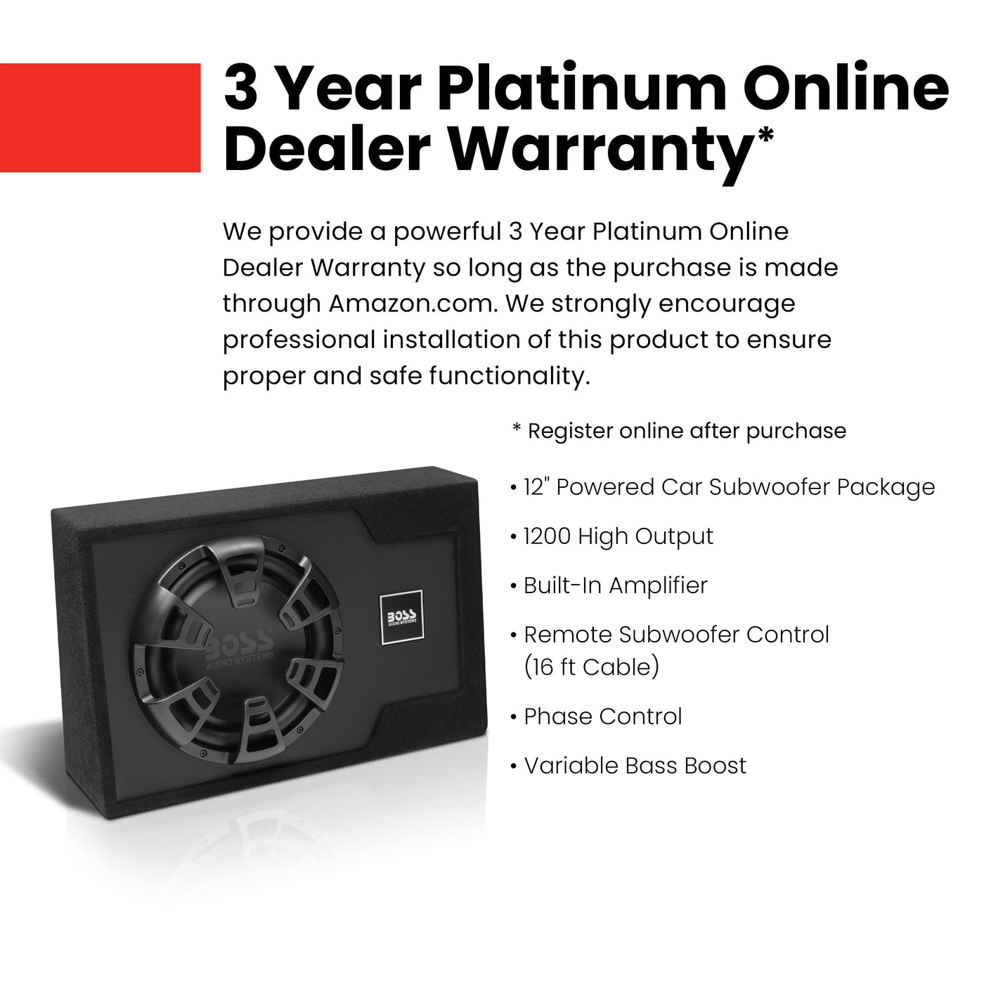 Boss Audio Systems B12Es 12 Inch Powered Car Subwoofer Package 1200 High Output, Built In Amplifier, Low Profile, Remote Subwo