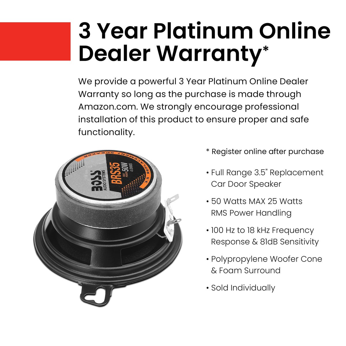Boss Audio Systems Brs35 3.5 Inch Replacement Car Door Speakers 50 Watts Max, Sold Individually, Use With Stereo And Tweeters
