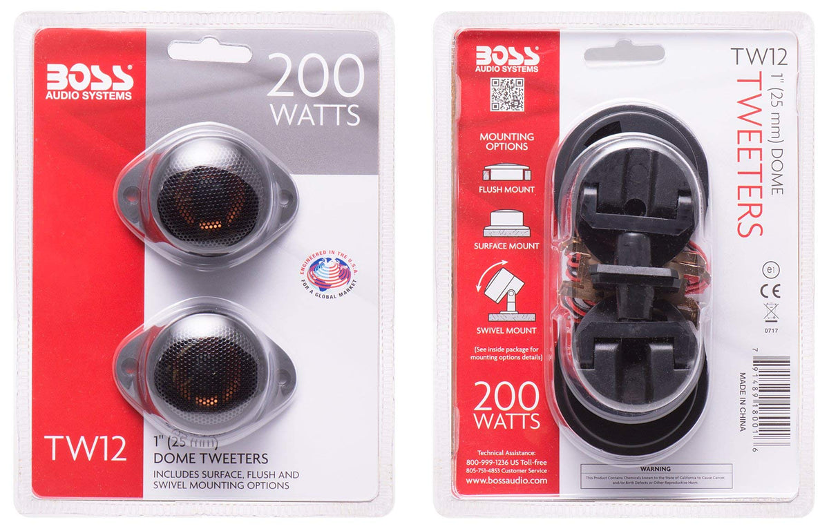 Enjoy Accurate High Frequency Sounds With The Boss Tw12 Car Speakers Which Boast A Frequency Response Of 5 Hz To 20 Khz. These Boss Car Speakers Render Excellent Music Output With A Power Handling Capacity 200 Watts. These Boss Audio Speakers Deliver Better Tweeting Effects With A Sensitivity Of 94 Db. Savor Balanced Music In Your Car With These Boss Audio Speakers Which Have An Impedance Of 4 Ohms. These Single Flush Mounted Poly Dome Boss Car Speakers Come With A Housing Which Allows Easy Placement Of These In Your Car. Incorporating A Strontium Ferrite Magnet, The Boss Tw12 Speakers Are Highly Effective And Efficient.