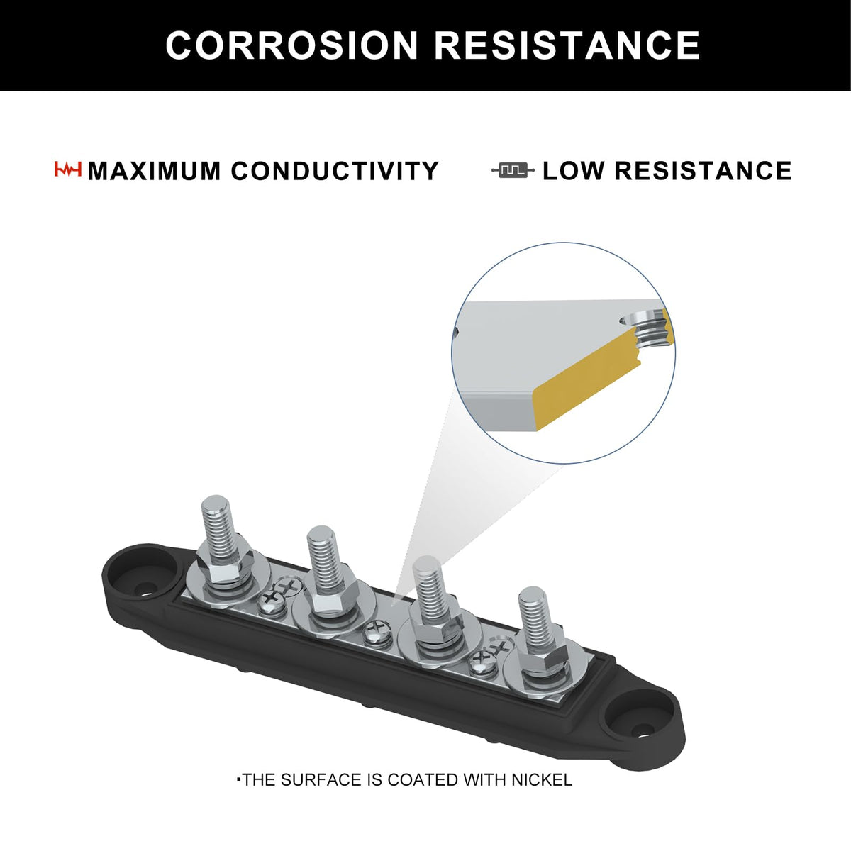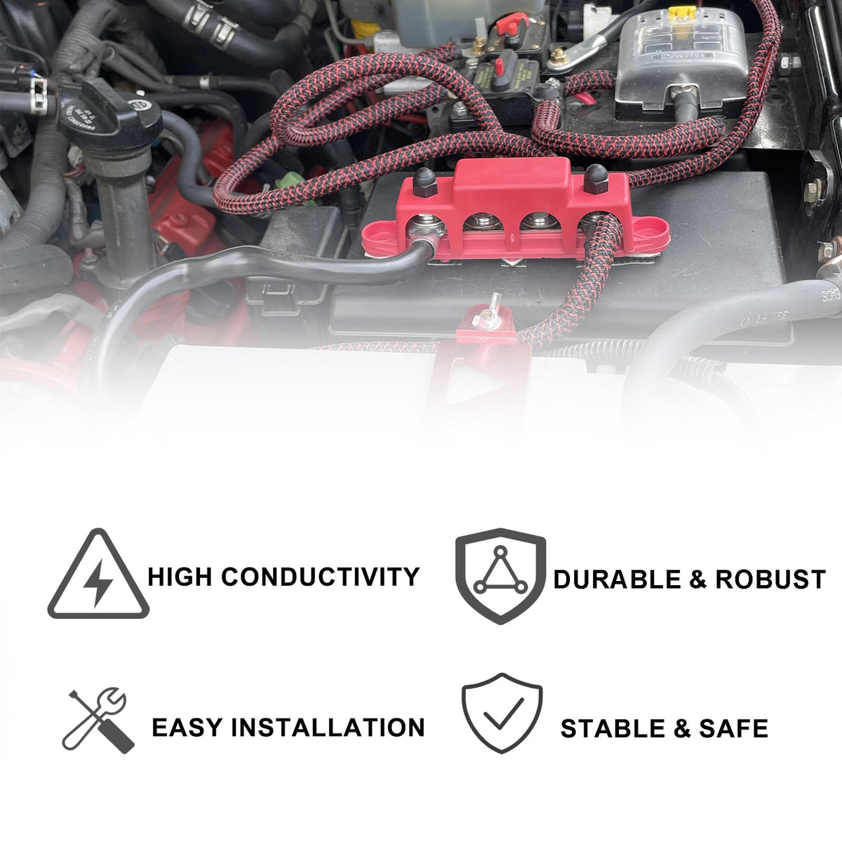 Bus Bar 250A 12V Power Distribution Block With 5/16'' (M8) 4 Posts Terminals Block With Cover For Automotive, Marine, Battery Sy