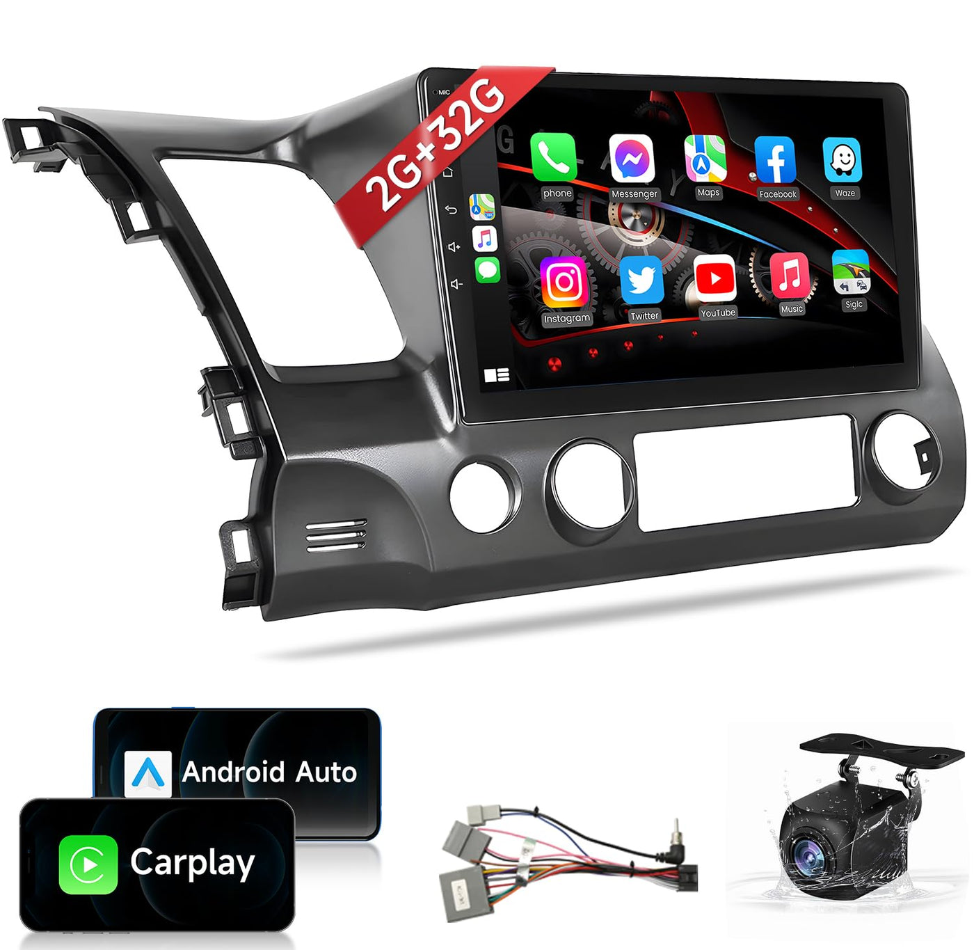 Upgrade For Honda Civic 8Th Generation (2006-2011) Stereo Experience With Our 10.1 Inches Android Car Stereo System. Featuring A Sleek 2.5D 1080P Hd Touch Screen, This Unit Boasts A Powerful 4-Core Processor With 2Gb Ram And 32Gb Rom, Ensuring Smooth Performance And Ample Storage For Apps And Media. Navigate Effortlessly With Offline And Online Gps Navigation, Complemented By Wifi Connectivity For Real-Time Updates. Enjoy Crystal-Clear Fm/Rds Radio With 18 Preset Stations And 16 Eq Presets, Customizable To Suit Your Music Preferences-From Folk To Jazz. Enhance Connectivity With Wireless Apple Carplay And Android Auto, Seamlessly Integrating Your Smartphone For Hands-Free Calls, Siri/Google Assistant Commands, And Access To Your Favorite Apps Directly On The Display. Additionally, Mirror Your Phone'S Screen Via Ios/Android Mirrorlink To Enjoy Apps, Music, And Videos On The Go. Safety Is Paramount With A Waterproof Hd Rear View Camera That Provides Sharp 1080P Ahd Visuals, Ensuring Clear Visibility Day Or Night. Control Everything Effortlessly With Support For Steering Wheel Controls Once Correctly Configured, Making Your Driving Experience Safer And More Convenient. Transform Your Driving Experience With Our Advanced Civic Stereo Upgrade-Perfectly Tailored, No Additional Accessories Required. 2006 Civic Radio / 2007 Civic Radio / 2008 Civic Radio / 2009 Civic Radio / 2010 Civic Radio / 2011 Civic Radio 2006 Civic Stereo / 2007 Civic Stereo / 2008 Civic Stereo / 2009 Civic Stereo / 2010 Civic Stereo / 2011 Civic Stereo 2006 Civic Head Unit / 2007 Civic Head Unit / 2008 Civic Head Unit / 2009 Civic Head Unit / 2010 Civic Head Unit / 2011 Civic Head Unit 2006 Civic Touch Screen Replacement / 2007 Civic Touch Screen Replacement / 2008 Civic Touch Screen Replacement / 2009 Civic Touch Screen Replacement / 2010 Civic Touch Screen Replacement / 2011 Civic Touch Screen Replacement