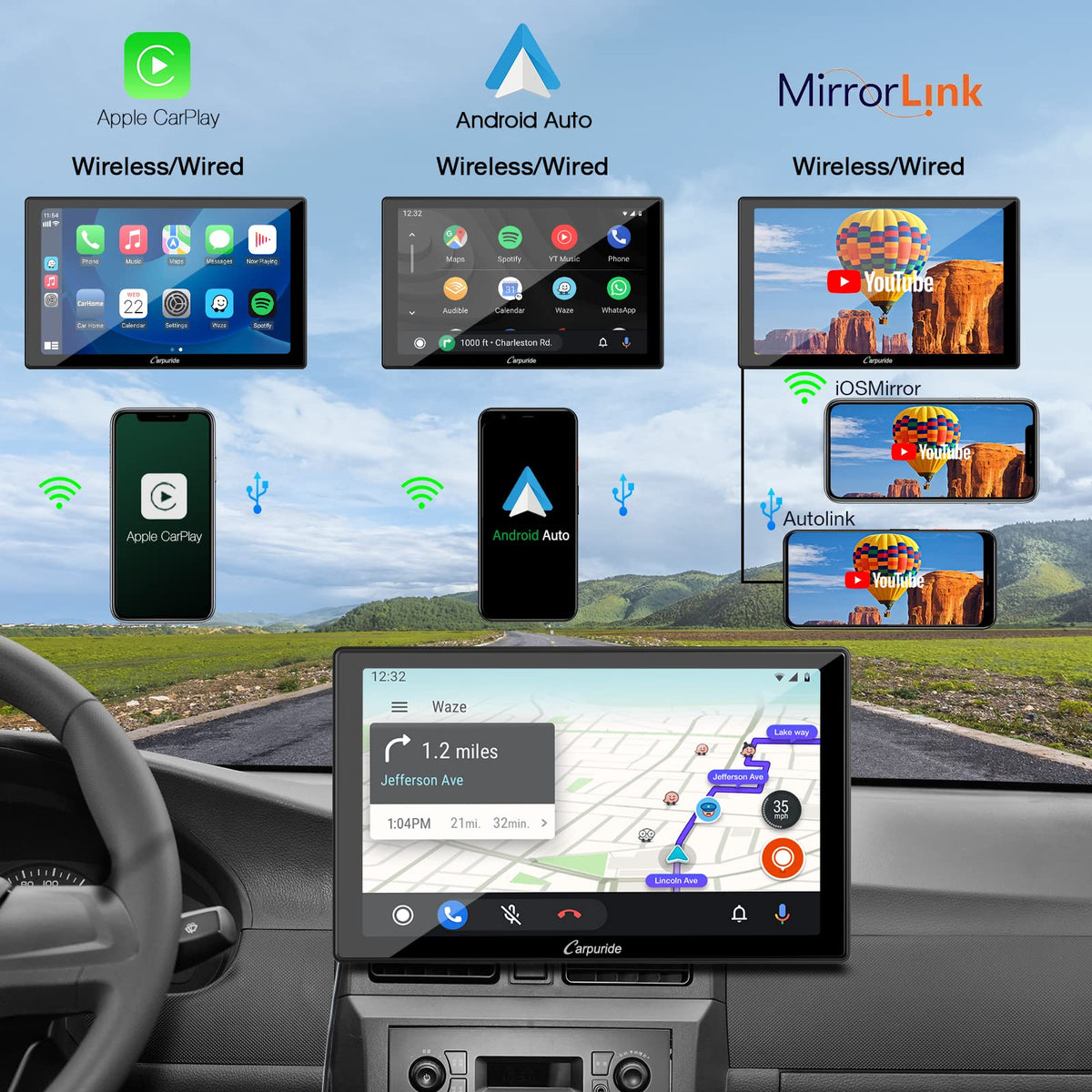 Supports Wireless &Amp; Wired Connections: Apple Carplay&Amp;Android Auto / Mirror Link / Autolink/ Usb Multimedia Player/ Tf Card Multimedia Player / Cam In/ Aux Output