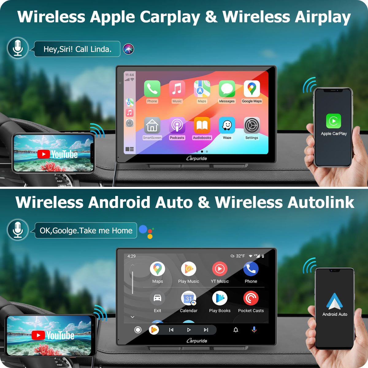 Q: Is the Carpuride W905 compatible with all smartphones?A: Yes, the Carpuride W905 is compatible with most iOS and Android smartphones. It supports Airplay for iOS devices (iPhone 6 and above) and Android Cast for Android devices running version 11 or higher.