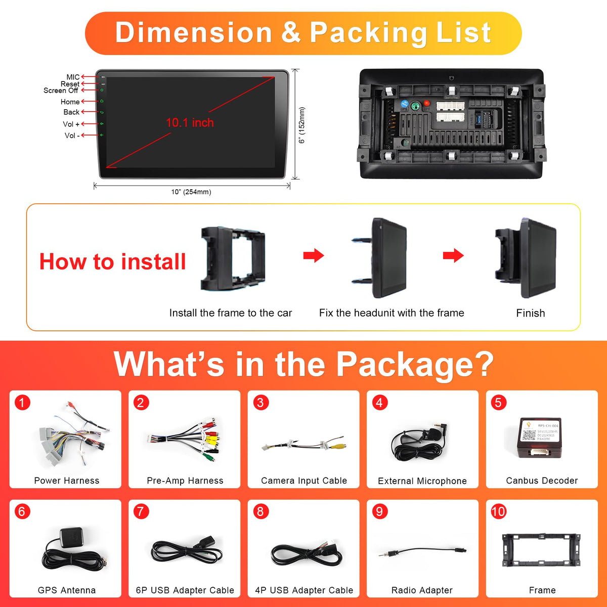 10.1 Inch Android Touch Screen Radio Upgrade Replacement Compatible With Jeep Jk Wrangler, Compass, Grand Cherokee, And Dodge Ram, Qled Display, Am/Fm, Gps Navigation, Swc, Eq, Mic, 2Gb+32Gb 2007 2008 2009 2010 2011 2012 2013 2014 2015 2016 2017