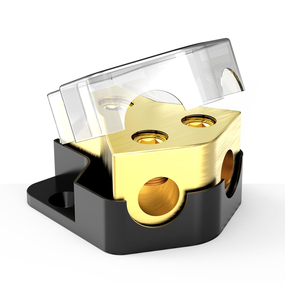 Specifications: Input :1 X 0/2/4 Gauge Output: 2 X 4/8/10 Gauge Dimension: 45Mm X 40Mm X 26Mm Color: Black & Gold Feature: 1.Acid And Rust-Resistant With A Corrosion-Resistant Snap-On Cover For Protection Against Water And Dust. 2. Accommodates 0/2/4 Awg Input And 4/8/10 Awg Output Wires, Ensuring Stable Current Distribution. 3. Simple Plug-And-Secure Process With Large Set Screws For A Firm Connection. 4. Ideal For Cars, Trucks, And Boats, Enhancing Audio System Performance And Longevity. 5.Ensures Optimal Performance And Protection For Your Car Audio System. Acompact, Durable Solution For Yo Ur Audio Needs.