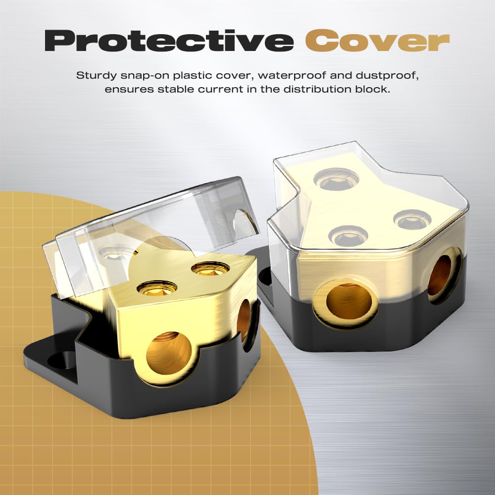 Q: Does the distribution block come with any protective features?A: Yes, it features a corrosion-resistant snap-on cover that protects against water and dust, ensuring optimal performance and protection for your car audio system.