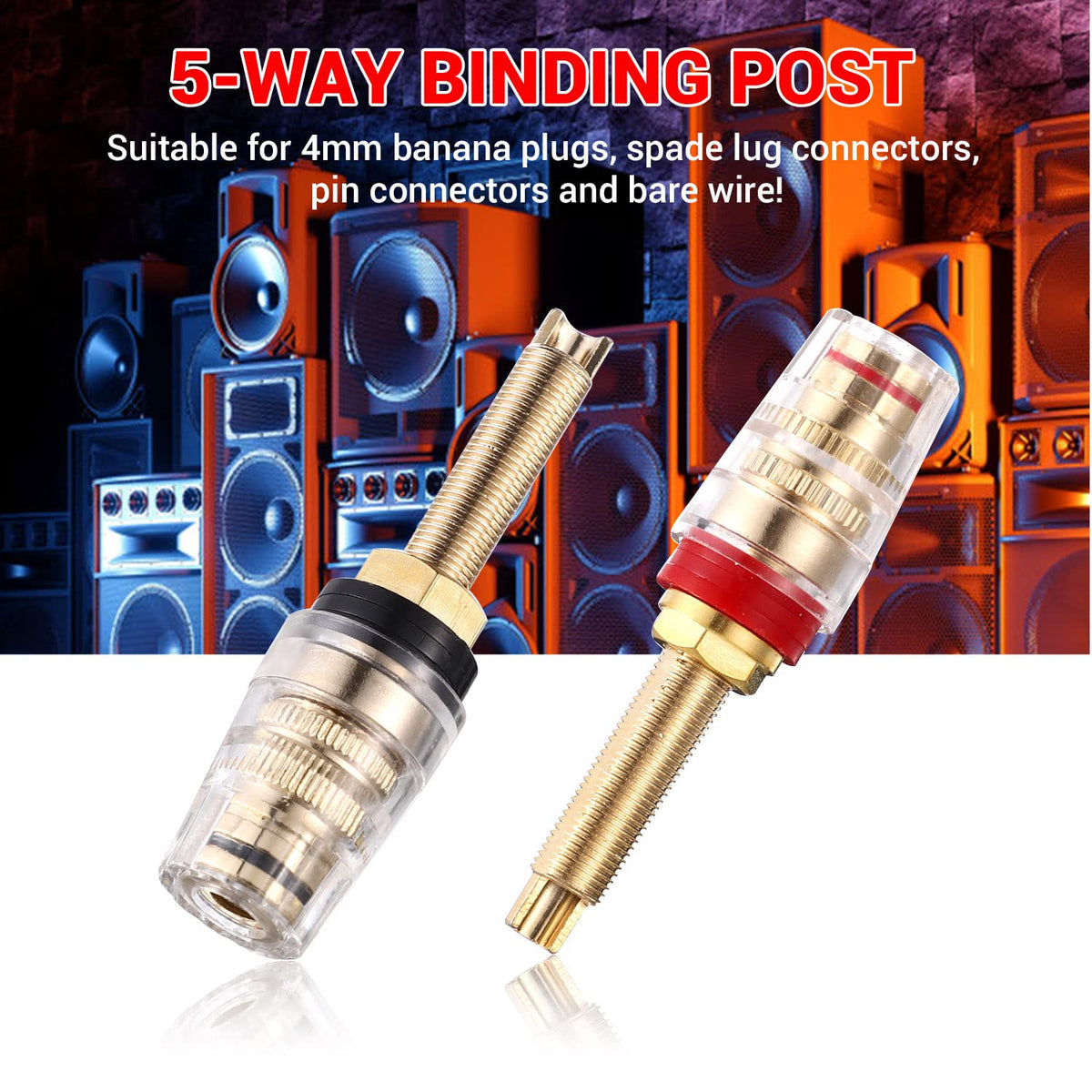 Facmogu 4Pcs Black & Red Heavy Duty 5 Way Binding Post Banana Jacks 4Mm, 24K Gold Plated Sold Brass Insulated Binding Post Banan