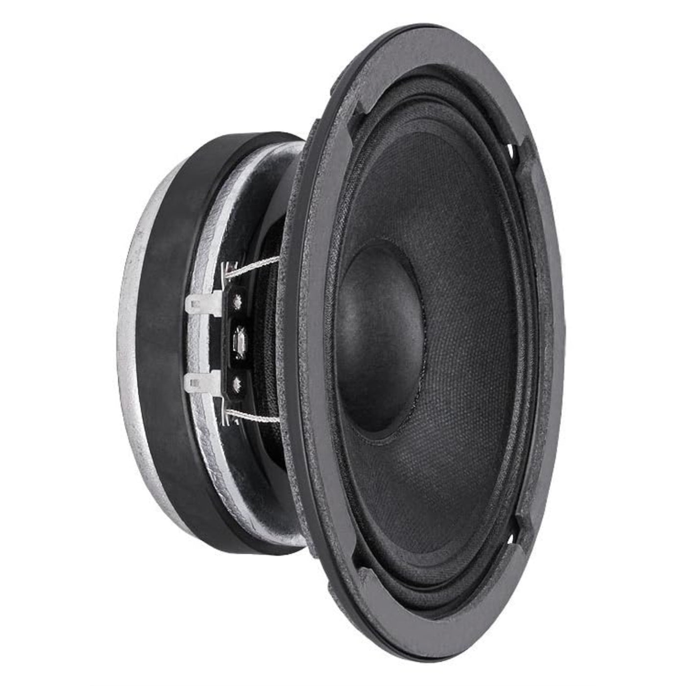 The FAITAL PRO 6FE200-4 is a 6-inch professional midrange loudspeaker known for its robust performance and versatility. This speaker is suitable for a variety of applications, including professional audio projects, high-output home audio, and car audio systems, waterproof cone and wide operating temperature range NOMINAL SPECIFICATIONS Nominal Diameter : 160 mm (6 in) Overall Diameter : 167.4 mm (6.59 in) Bolt Circle Diameter : 154 mm (6.06 in) Baffle Cutout Diameter : 144 mm (5.67 in) Depth : 77 mm (3.03 in) Flange and Gasket Thickness : 8 mm (0.31 in) Net Weight : 2 kg (4.4 lb) Shipping Box (Single Carton Box) : 190 x 185 x 103 mm (7.5 x 7.3 x 4.1 in) Shipping Weight : 2.2 kg (4.9 lb) TECHNICAL PARAMETERS Nominal Impedance : 8 Ohm Minimum Impedance : 6.8 Ohm AES Power Handling (1) : 130 W Maximum Power Handling (2) : 260 W Sensitivity (1W/1m) : 95 dB Frequency Range : 856000 Hz Voice Coil Diameter : 37 mm (1.46 in) Winding Material : Al Former Material : Kapton TECHNICAL PARAMETERS Winding Depth : 12 mm (0.47 in) Magnetic Gap Depth : 8 mm (0.31 in) Flux Density : 1 T Magnet : Ferrite Ring Basket Material : Steel Demodulation : No Cone Surround (3) : M-Roll NET Air Volume filled by Loudspeaker : 0.45 dm^3 (0.016 ft^3) Spider Profile : 1x constant height waves THIELE AND SMALL PARAMETERS Fs : 120 Hz Re : 5.9 Ohm Qes : 0.75 Qms : 6.2 Qts : 0.67 Vas : 3.6 dm^3 (0.13 ft^3) Sd : 131 cm^2 (20.23 in^2) Xmax (4) : 4.67 mm Xdamage (5) : 10.4 mm Mms : 11.5 g Bl : 8.2 N/A Le : 0.4 mH Mmd : 9.8 g Cms : 0.15 mm/N Rms : 1.4 kg/s Eta Zero : 0.80 % EBP : 160 Hz Brand : FAITAL PRO Model Number : 6FE200-8 | 6FE200 PART NUMBER (P/N) Faston Terminals - 8 Ohm Version : 01604017 UPC : 810130951345 NOTES (1) 2 Hours Test According to AES 2-1984 Rev. 2003 (2) Maximum power is defined as 3dB greater than nominal power (3) Treated Polycotton (4) Xmax= [(winding depth - magnetic gap depth)/2] + (magnetic gap depth/3) (5) Maximum excursion before permanent damage