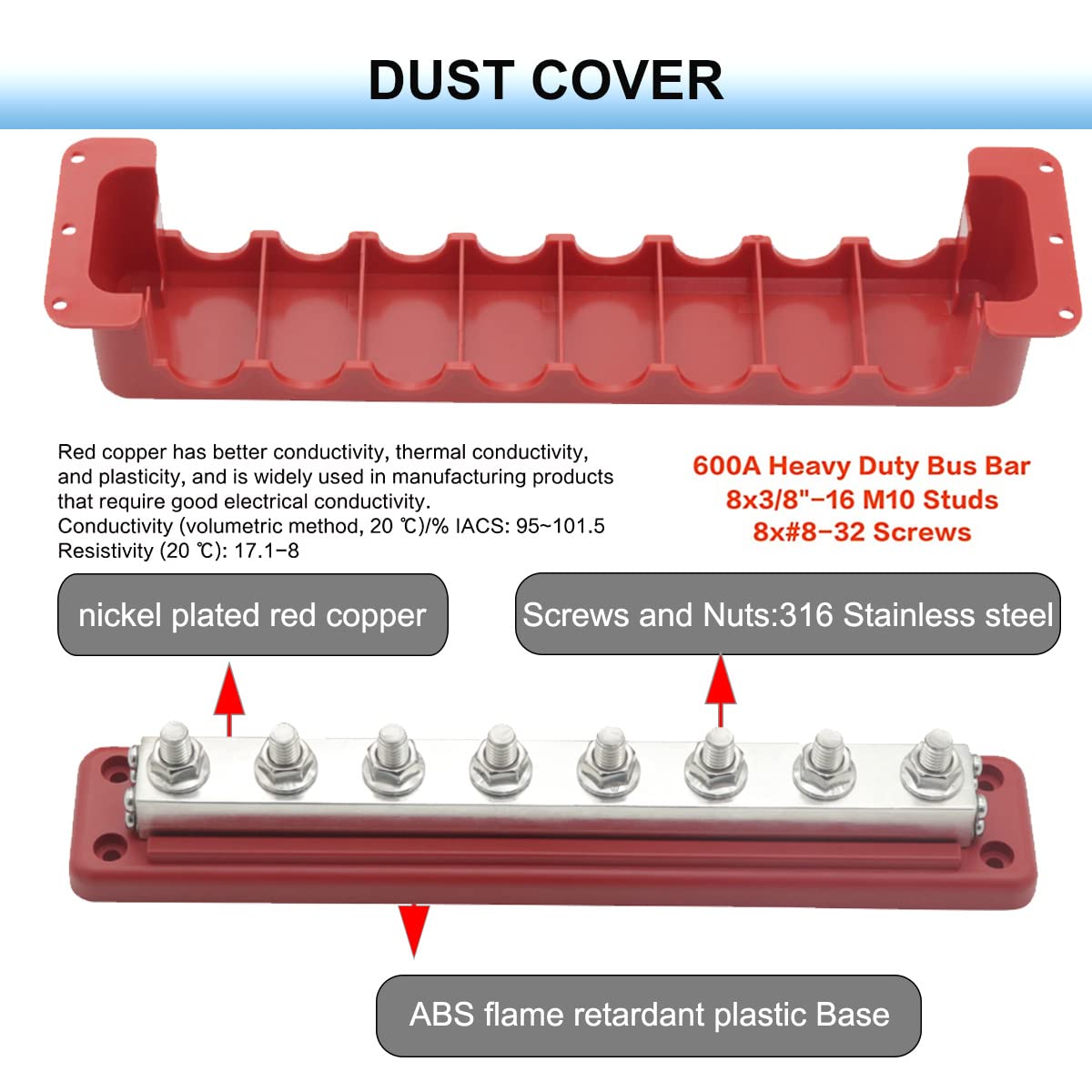Gloaso 600A Copper Bus Bar Power Distribution Block Heavy Duty 8 X 3/8'' Posts Terminals Distributor Connecting Blocks 12V 48V