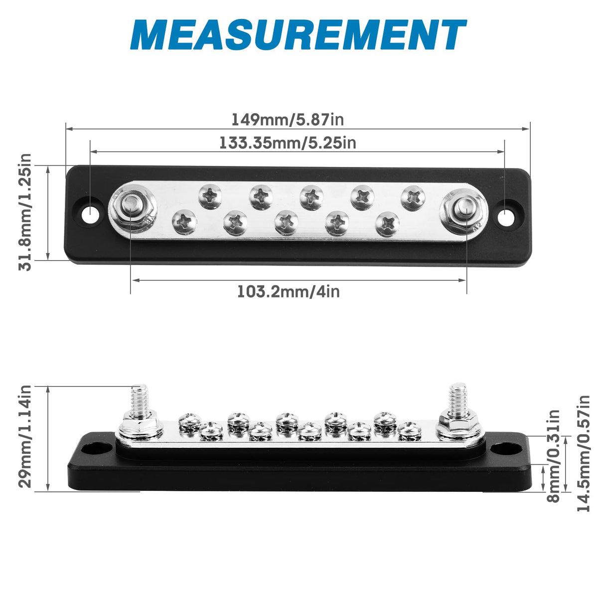 Gloso Common Bus Bar M6 Studs Power Distribution Block Marine Busbar Battery Terminal Distribution Block 10P 10X1