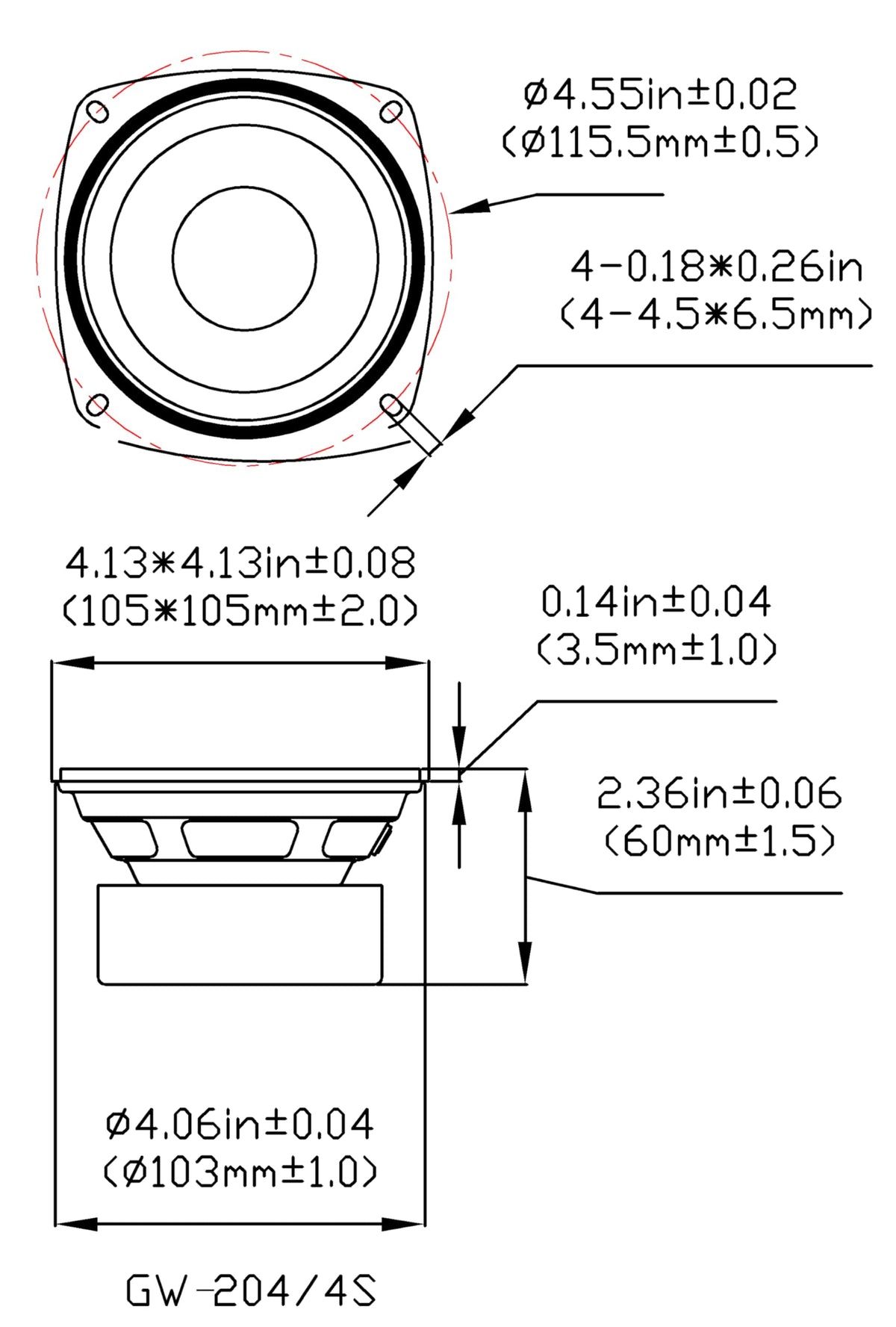 Goldwood Sound Gw-204/4S Shielded 4 Woofer 70 Watt 4Ohm Replacement Speaker,Black