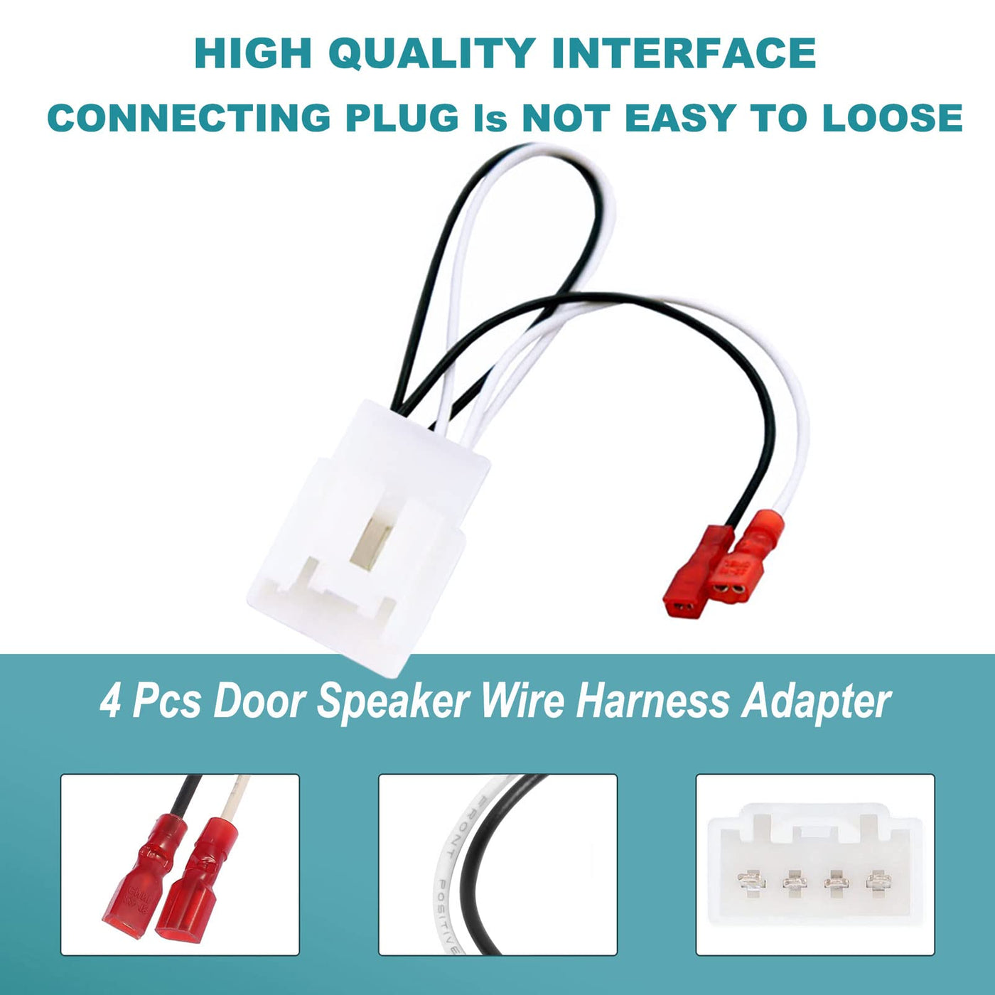 Features : (***Warm Tip : Please Make Sure Your Oe Number Is Correct Before Ordering.***) Speaker Harness Connectors Designed For Select Ford, Mazda,Lincoln, Vehicles. Quick And Easy Installation. Plug-In The Original Radio Receiver No Cutting Into Original Wiring Required. High Quality Abs Plastic Molded Connector For The Perfect Fit. Total Length : 7 Inch. Package Included: 4 Pack Car Door Speaker Connector Harness Adapter.
