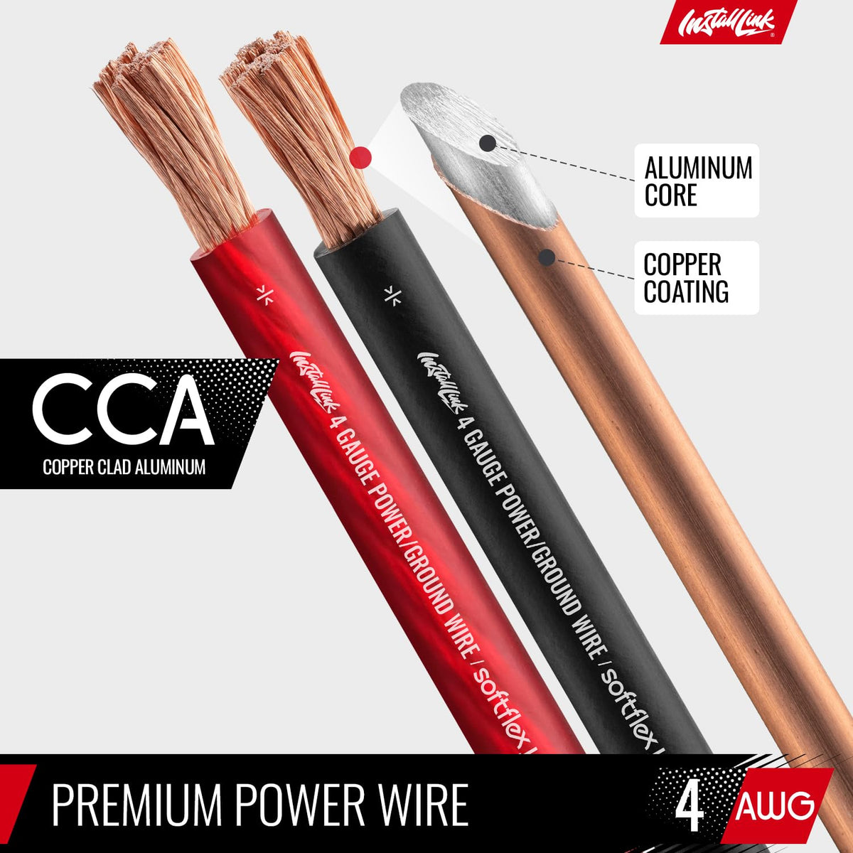 4 Gauge Power Or Ground Battery Cable | Copper Clad Aluminum Conductor (Cca) | 25 Feet (7.6M) Red And 25 Feet (7.6M) Black - 50 Feet Total (15.2M) | Perfect For Connecting Car Audio Amplifers To The Battery Or Adding Additional Batteries | Our Rugged Softflex Jacket Will Make Installation A Breeze