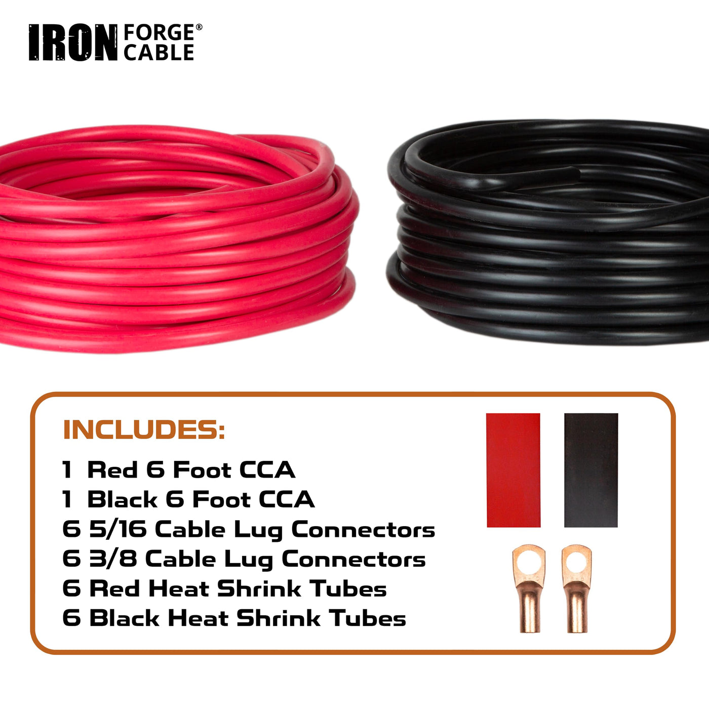 Economical Cca Wire: Our 6 Ft Primary Cable Option, Copper Clad Aluminum (Cca), Is A Cost-Effective Choice For Power Or Ground Wire With Excellent Power Transfer. | Versatile Power/Ground Wire Set: Suitable For Various Applications Such As Car Amplifiers, Subwoofers, Indoor Lighting, Automotive, And More. | Durable Soft Touch Jacket: This 6 Gauge Wire Is Designed For Electrical And Auto Repair Installers, The Pvc Jacket Offers Strength, Flexibility, Elasticity, And Impact Resistance. | Easy Polarity Identification: Red And Black Colored Jackets And Ground Wire Simplifies Installation, Preventing Polarity Errors That Could Damage Your Audio Equipment. | 100% Satisfaction Guaranteed: Us Veteran Owned - Iron Forge Cable, A U.S. Veteran-Owned Business, Stands Behind Its Cca Extension Cord. If Any Issues Arise, We'Ll Replace It With A New One.