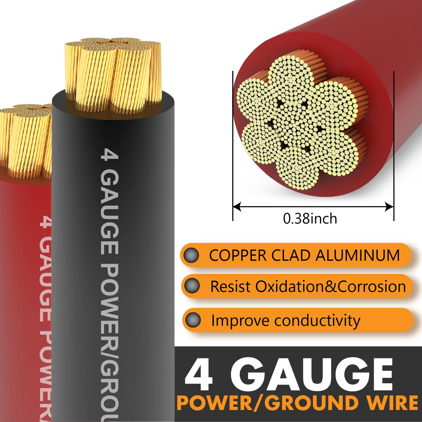 Jeemiter 4 Gauge Wire Copper Clad Aluminum Primary Automotive Wire, Car Amplifier Power & Ground Cable, Battery Cable With Lug