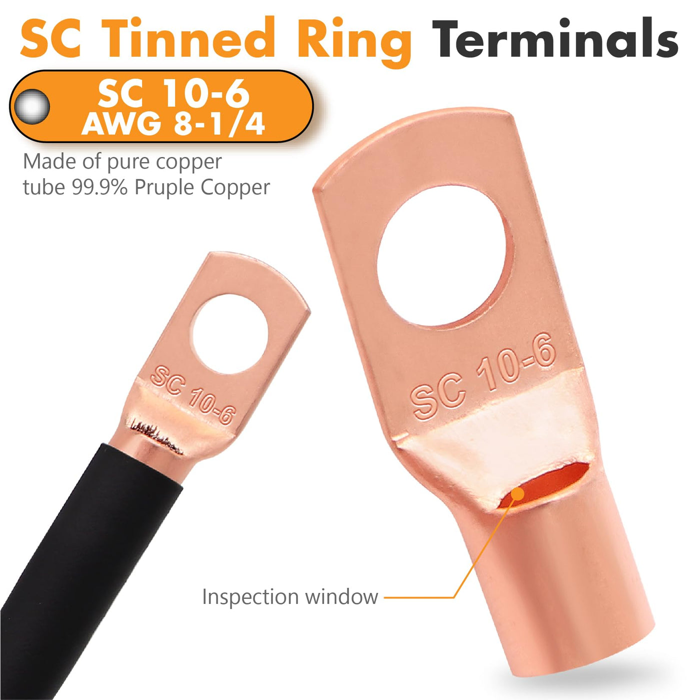 Jeemiter 8 Gauge Wire (50Ft Each Black/Red) Copper Clad Aluminum Primary Automotive Wire Power/Ground, Battery Cable With Lug