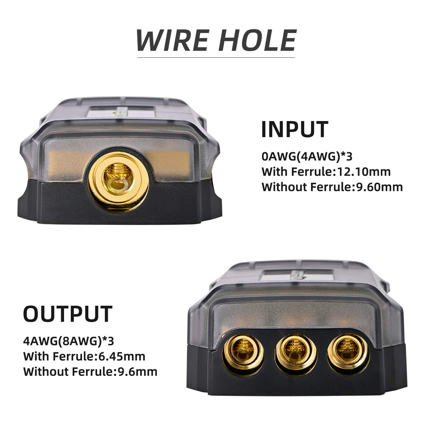 Leigesaudio Copper 0/4 Gauge To 4/8 Gauge 60 Amp Mini Anl 3 Way Fuse Holder Distribution Block