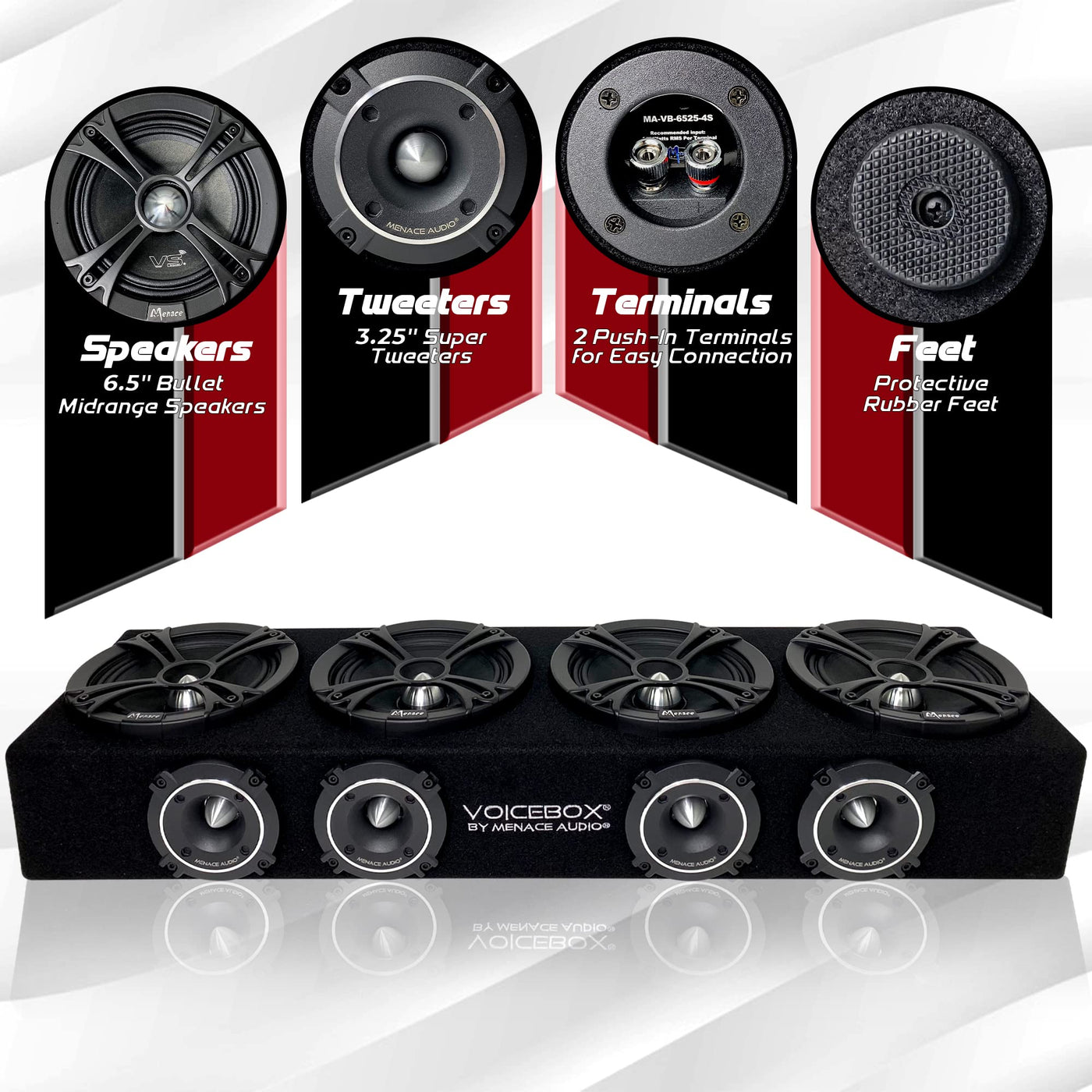 Menace Audio Car Audio Midrange Enclosure 4 X 6.5 2000Watts Voicebox (Ma Vb6525 4S) Silver
